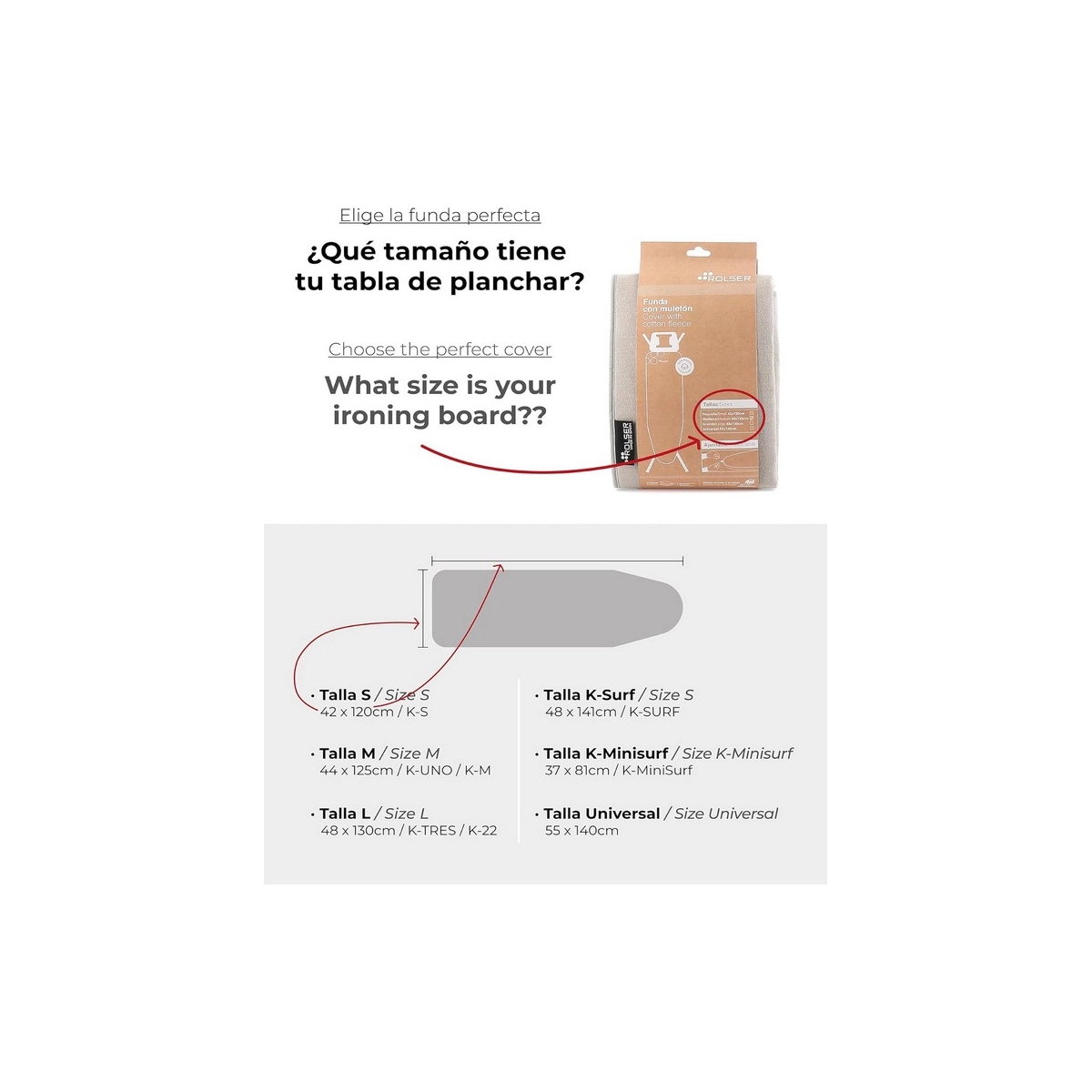 Rolser - Funda 100% Algodón para Tabla de Planchar-Talla Universal 140x55 cm-Negro