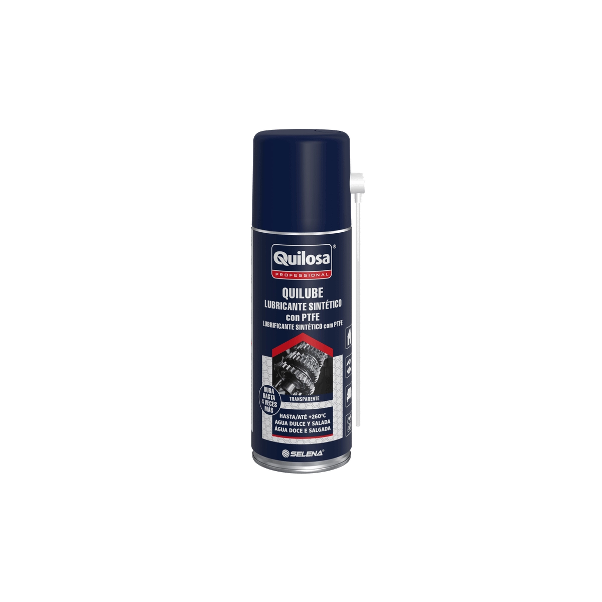 Lubricante multiusos QUILOSA QUILUBE en aerosol 400 ml, transparente, evita el desgaste y reduce la fricción en piezas móviles.