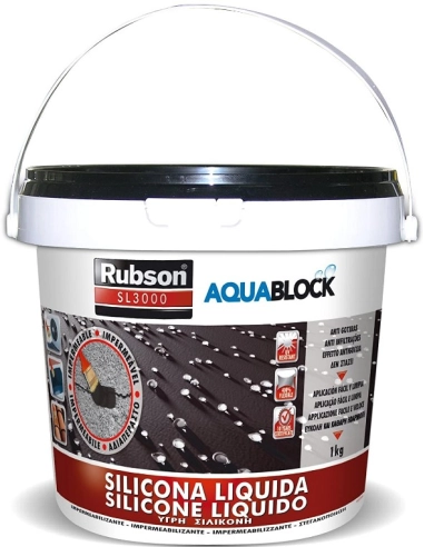 Rubson Aquablock SL3000 Silicona Líquida negra, impermeabilizante 1kg