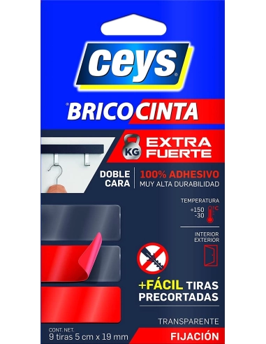 CEYS - CINTA DOBLE CARA PRE-CORTADA EXTRA FUERTE - 9 TIRAS