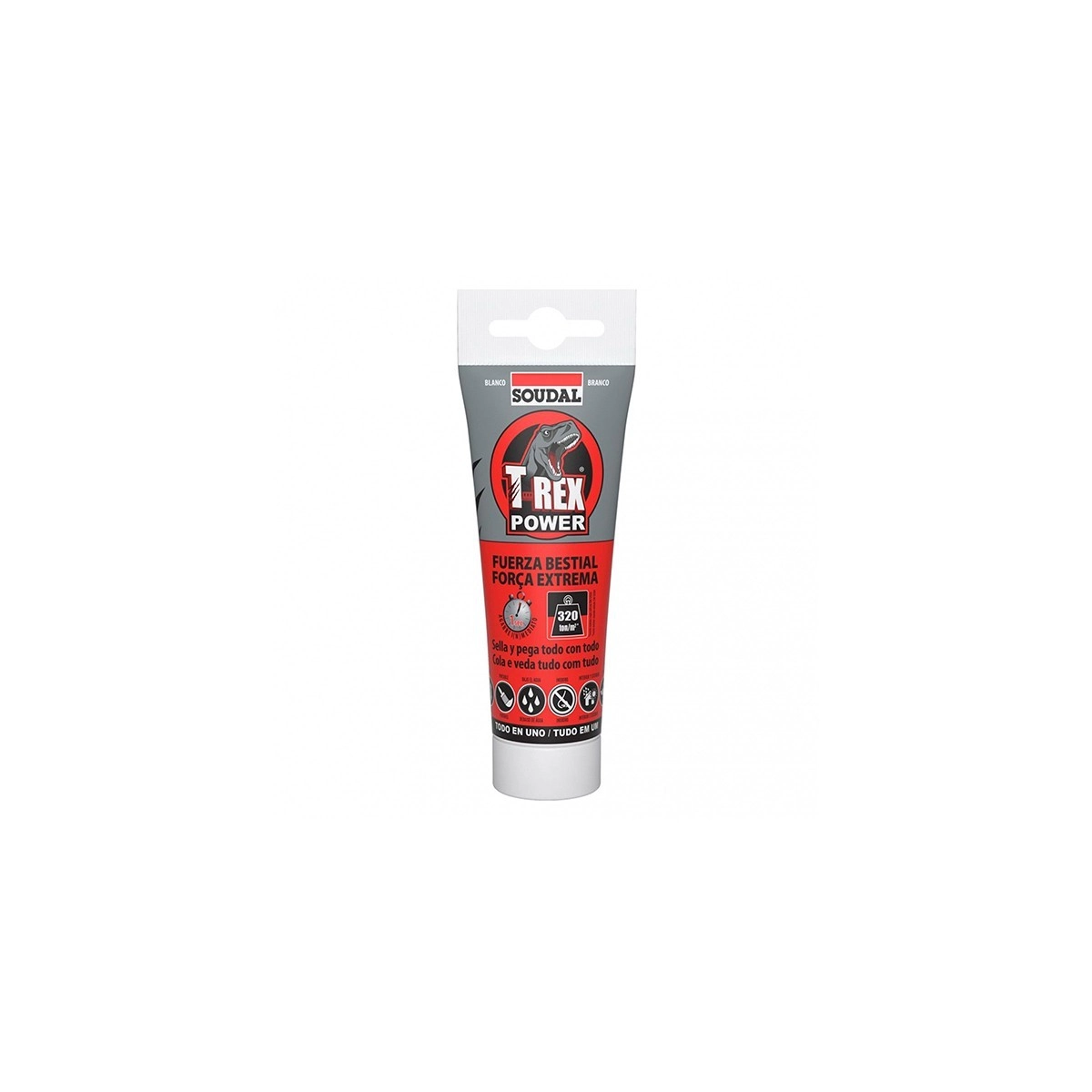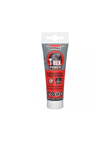 El T-Rex Power Fuerza Bestial Blanco 125 ML de SOUDAL es un adhesivo sellador de alta potencia, especialmente formulado para uniones y reparaciones donde se requiere máxima resistencia.