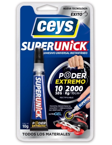 SUPERUNICK ES EL ADHESIVO UNIVERSAL INSTANTANEO DE MAXIMAS PRESTACIONES Y ACABADOS PERFECTOS EN 10 SEGUNDOS. FUERTE, RAPIDO Y SEGURO.
