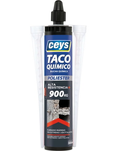 CEYS TACO QUIMICO POLYESTER BICOMPONENTE ASEGURA UN ANCLAJE EXTREMADAMENTE RESISTENTE SOBRE SOPORTES HUECOS, FRAGILES O COMPACTOS TIPO LADRILLO, HORMIGON, CEMENTO, PIEDRA NATURAL, MADERA.