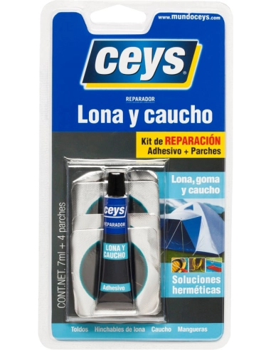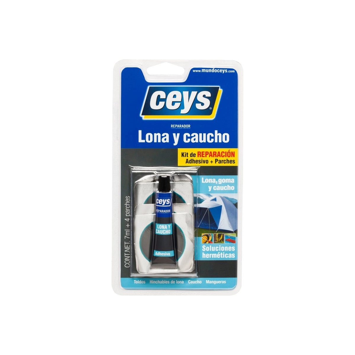 CEYS - KIT DE REPARACION LONA, GOMA Y CAUCHO - ADHESIVO + PARCHES