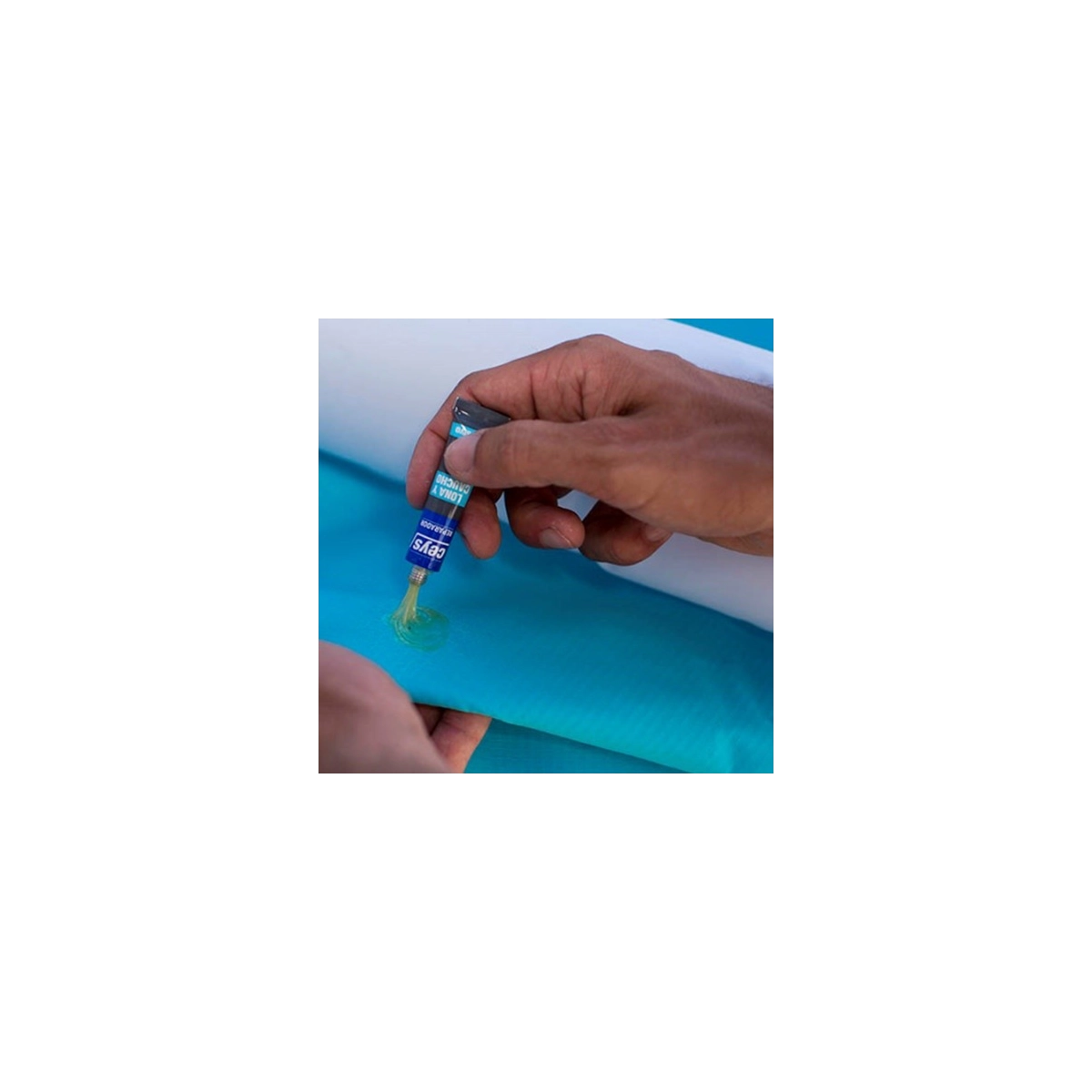 KIT DE ADHESIVO Y PARCHES QUE SELLA Y REPARA PEQUEÑOS AGUJEROS Y DESGARROS EN TELAS DE LONA Y SUPERFICIES DE GOMA Y CAUCHO CON EXTREMA SIMPLICIDAD, RAPIDEZ Y EFICACIA.