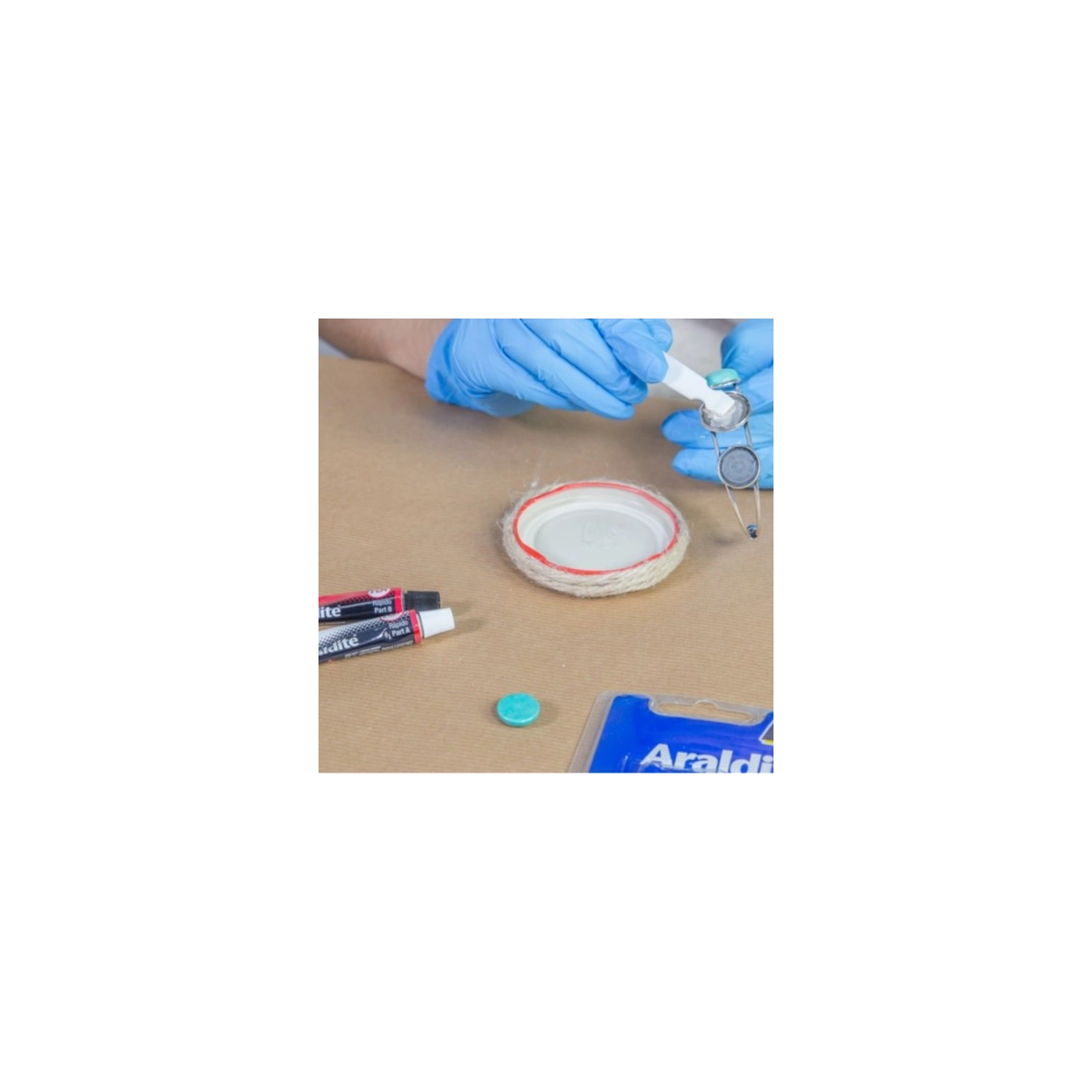 ADHESIVO EPOXI DE DOS COMPONENTES, UNA RESINA Y UN ENDURECEDOR, QUE REACCIONAN AL MEZCLARSE. CON UN ENDURECIMIENTO MUY CORTO, POR LO QUE ES IDEAL PARA UNIONES RAPIDAS. ADEMAS RELLENA TODO TIPO DE CAVIDADES QUE EXISTAN ENTRE LAS DOS SUPERFICIES A ENSAMBLAR. UNE PRACTICAMENTE TODOS LOS MATERIALES CON EXCEPCION DEL POLIETILENO, POLIPROPILENO, PTFE Y SILICONA