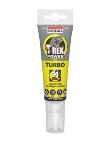 El T-Rex Turbo Blanco 125 ML de SOUDAL es un adhesivo sellador de acción rápida, diseñado para unir y sellar materiales de manera eficaz y duradera.