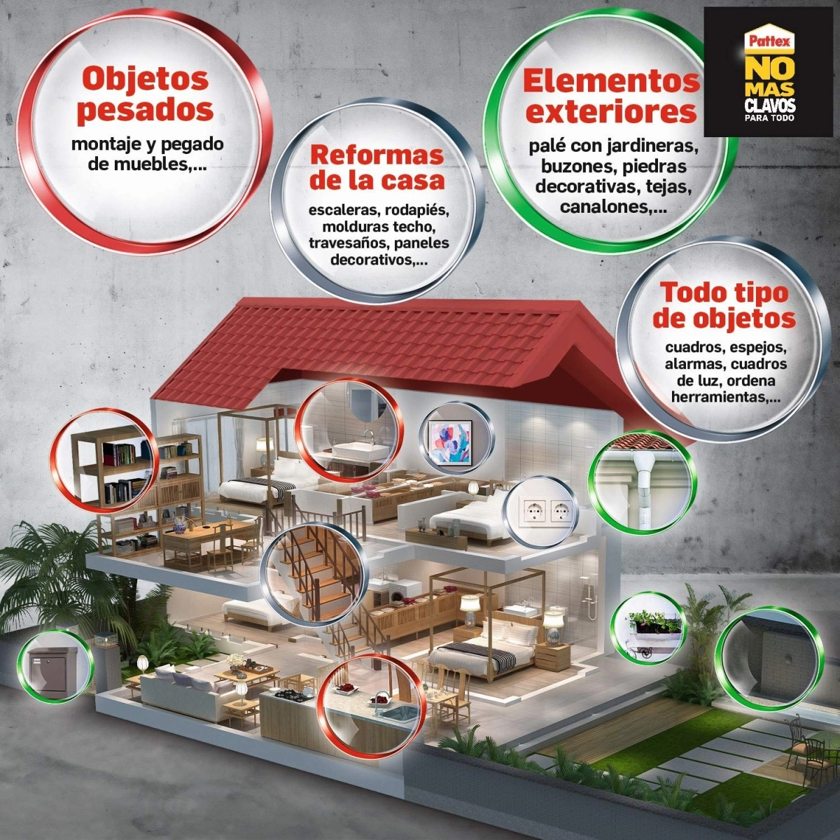 Adhesivo de montaje invisible Pattex No Más Clavos, ideal para unir materiales sin necesidad de clavos. Presentación de 216 gramos.