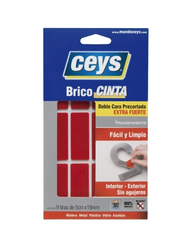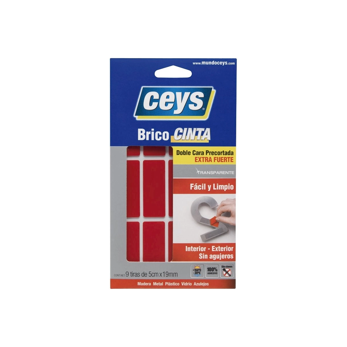 CINTA DOBLE CARA PRECORTADA EXTRA FUERTE - 9 TIRAS 5CMx19MM