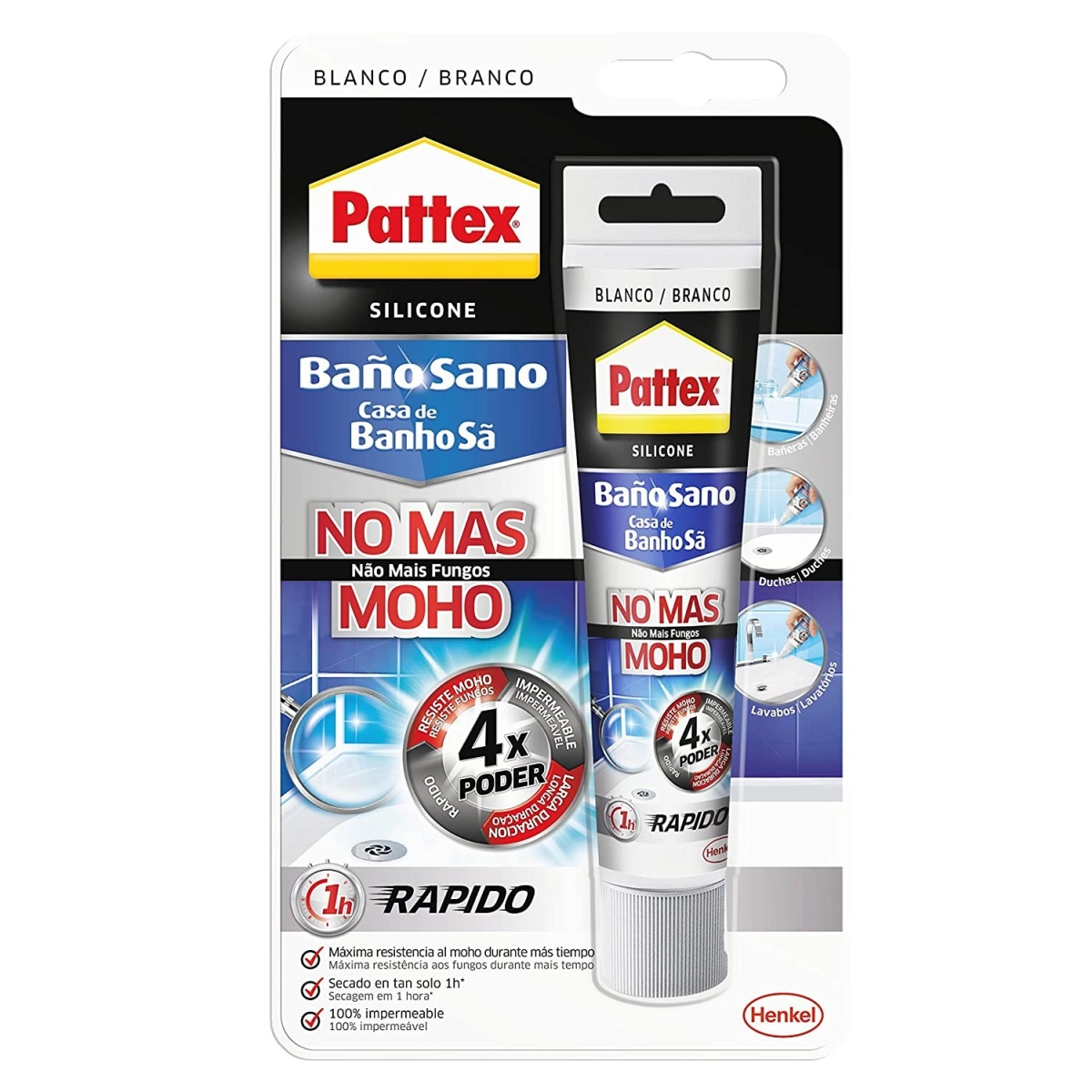 - SILICONA IDONEA PARA ENTORNOS HUMEDOS Y CALIDOS COMO DUCHAS, BAÑERAS, COCINAS Y OTRAS AREAS O SUPERFICIES
