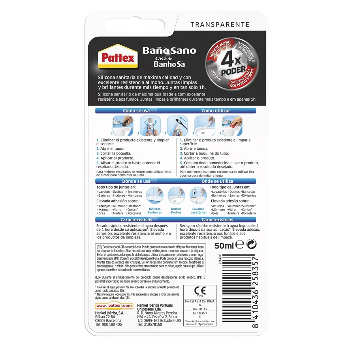 Silicona transparente de alta calidad, resistente al moho y 100% impermeable. Perfecta para sellar duchas, bañeras y fregaderos en entornos húmedos y cálidos. Su fórmula de secado rápido crea un acabado flexible y duradero, evitando filtraciones y la formación de moho.