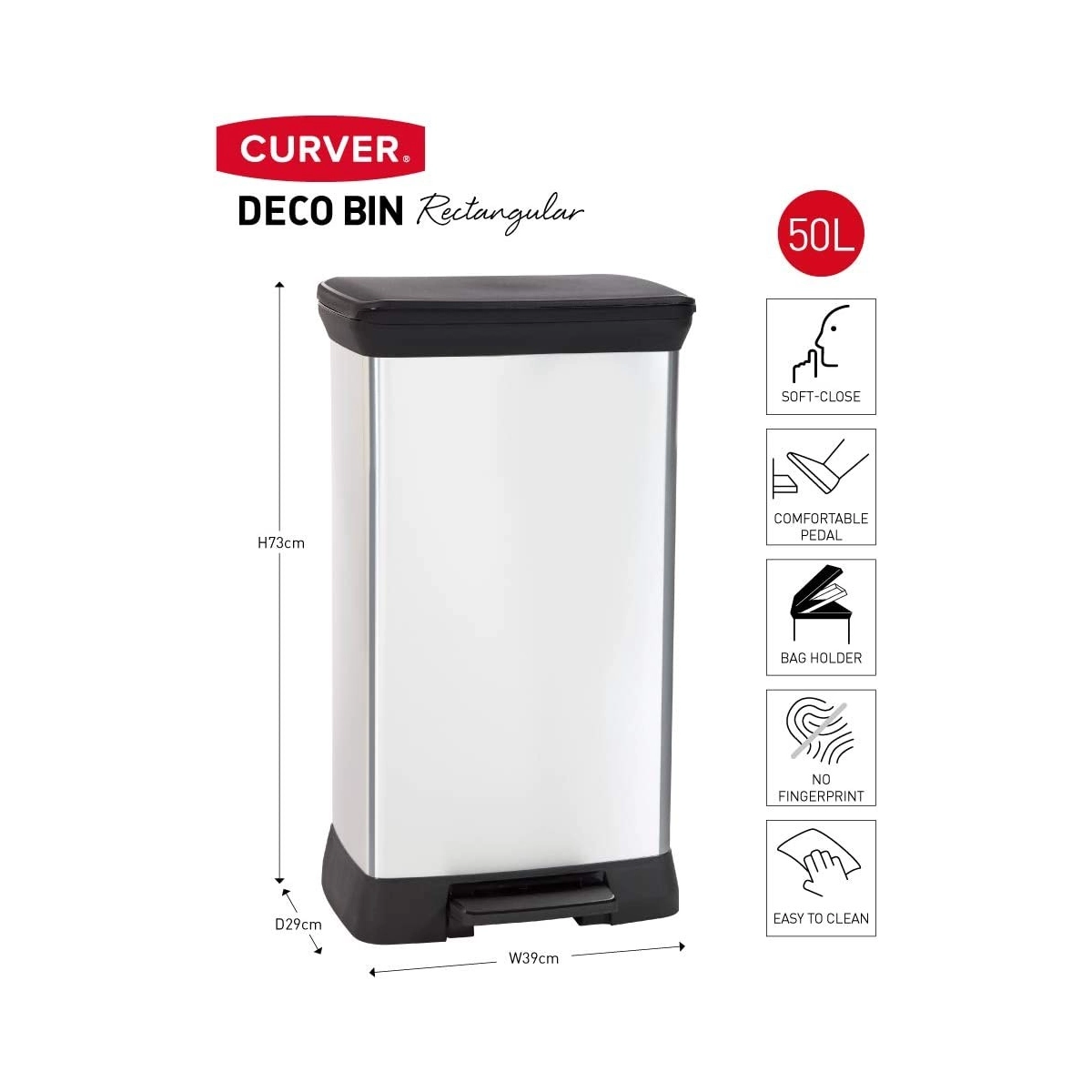 CURVER - CUBO DE BASURA DECO SLIM GRIS - 50 L