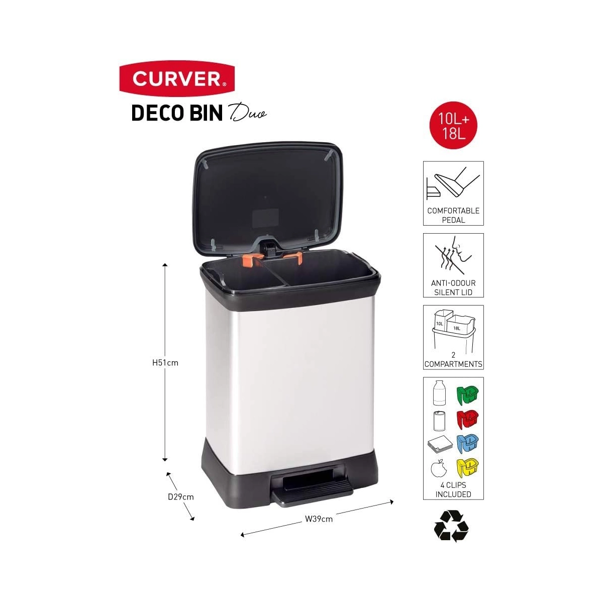 CURVER - CUBO DE BASURA GRIS DUO - PEDAL - 10 + 18 L