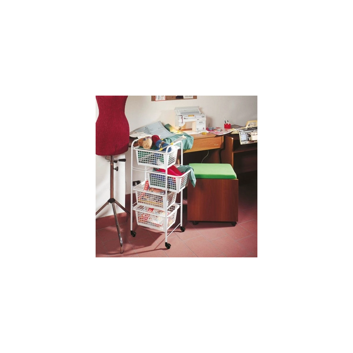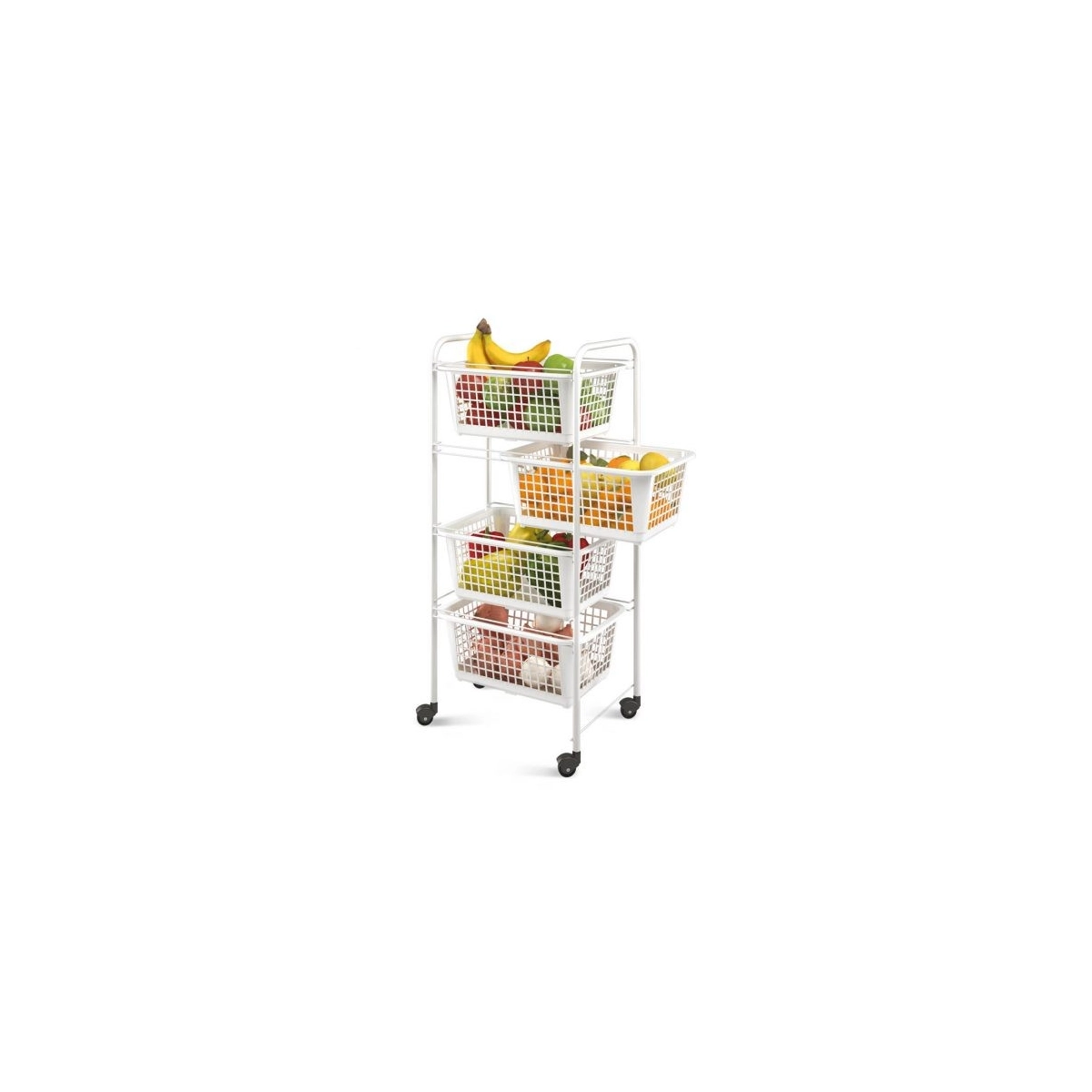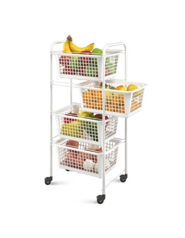 Metaltex - Carro Multiusos Blanco con Ruedas y 4 Cestas Extraíbles.