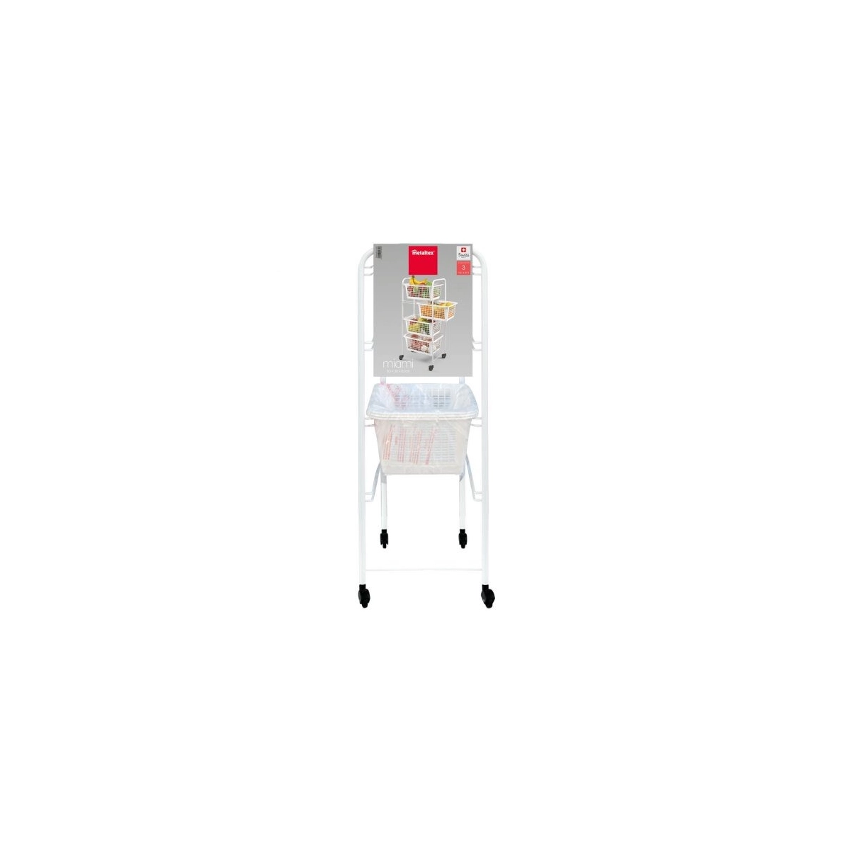 El carro multiusos Metaltex en color blanco es la solución perfecta para mantener organizados tus espacios. Fabricado con alambre plastificado LDPE, ofrece resistencia y durabilidad.