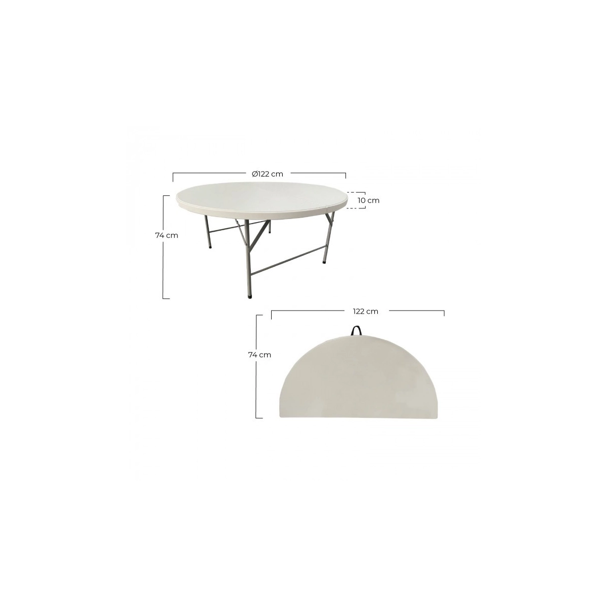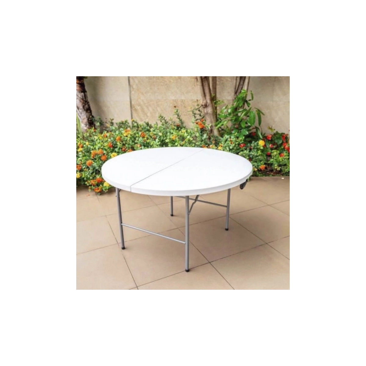 Mesa Plegable Redonda Efecto Granito Blanco - 120 x 74 CM