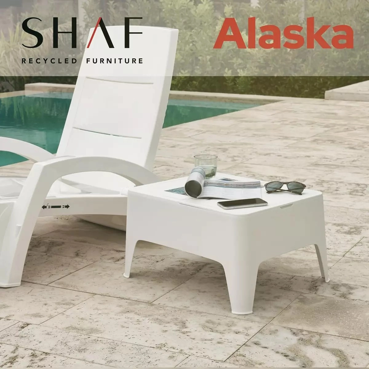 La Mesa Auxiliar Alaska Blanca es la combinación perfecta de funcionalidad, resistencia y compromiso con el medio ambiente. Fabricada en España con plástico reciclado, es una opción ecológica y versátil para cualquier espacio.