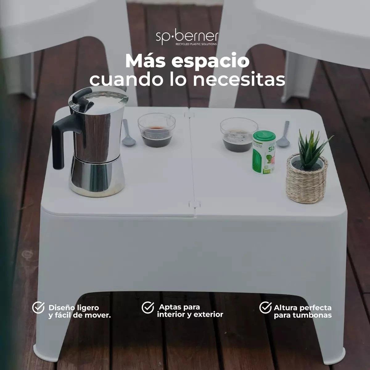 Como mesa auxiliar en terraza, jardín o balcón.