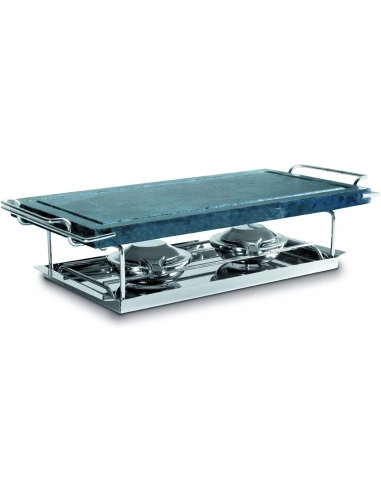 IBILI - GRILL PIEDRA CON SOPORTE + BANDEJA + 2 LAMPARILLAS ACERO INOXIDABLE - 37 x 18 CM
