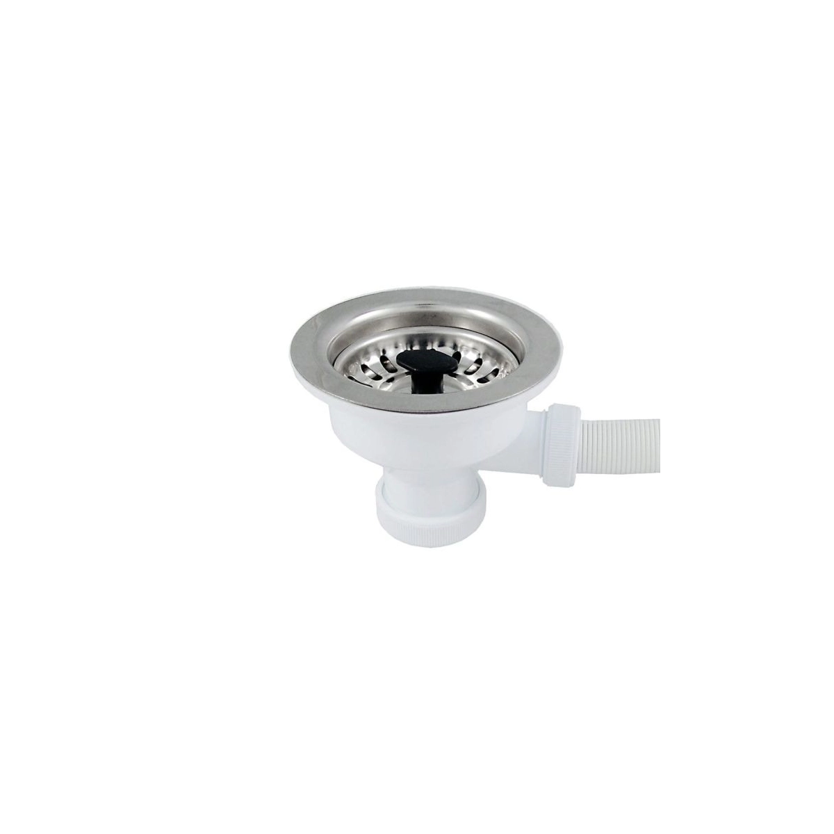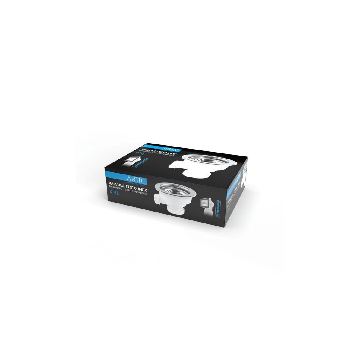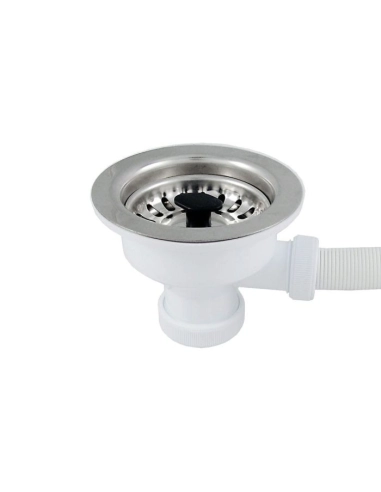 Diseñada para fregaderos con rebosadero, incluye conexión lateral de 113 mm que asegura un desagüe eficiente y evita el desbordamiento del agua.