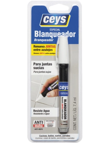 ROTULADOR QUE RENUEVA LAS JUNTAS ENTRE AZULEJOS DE COCINAS, BAÑOS Y SUELOS. ESTA FORMULADO ESPECIALMENTE CON ANTIBACTERIA QUE EVITA LA APARICION DE MOHO Y PROPORCIONA SUPERFICIES SEGURAS PARA NIÑOS Y ANIMALES DOMESTICOS. EL ROTULADOR CUBRE JUNTAS, TIENE UN MANGO ANTIDERRAPANTE Y UNA PUNTA FINA PARA LLEGAR A LAS JUNTAS MAS ESTRECHAS.