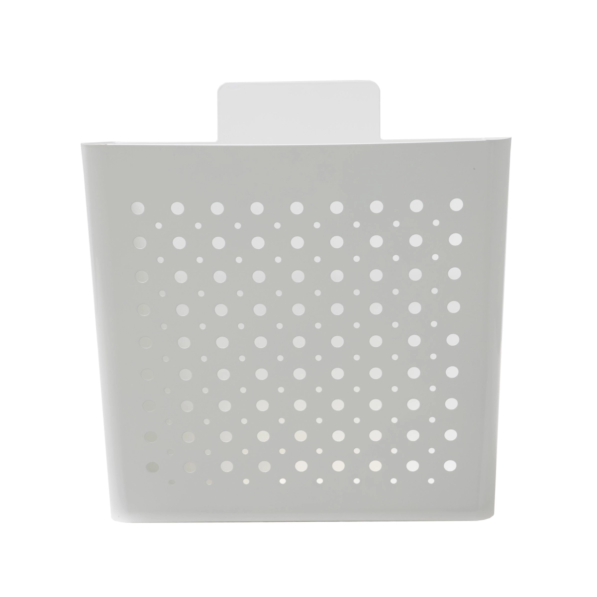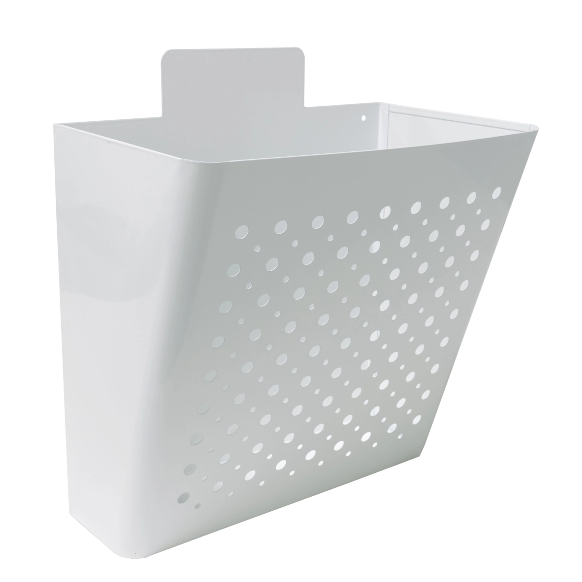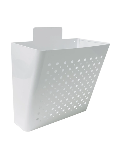 CESTA DE PUBLICIDAD DE ACERO EN COLOR BLANCO CON REJILLA FRONTAL