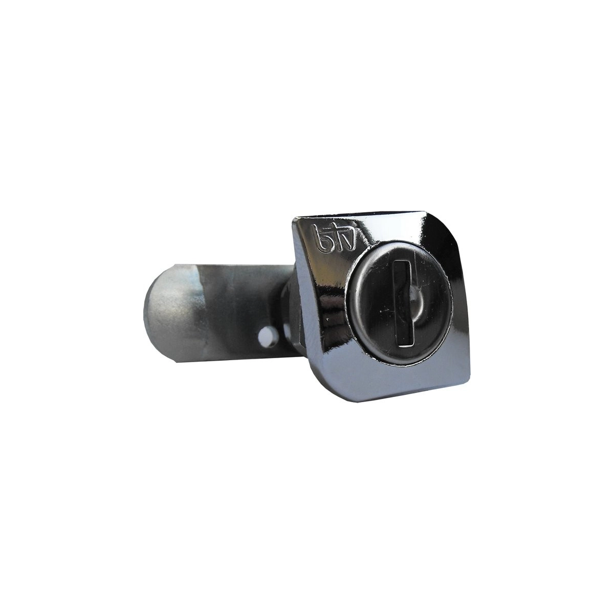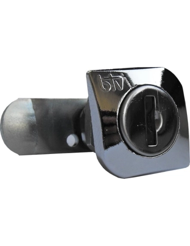 Cerradura cuadrada BTV en acabado cromo, ideal para reforzar la seguridad en muebles, buzones y pequeños compartimentos. Fabricada en materiales de alta calidad para garantizar resistencia, durabilidad y fiabilidad en el uso diario.