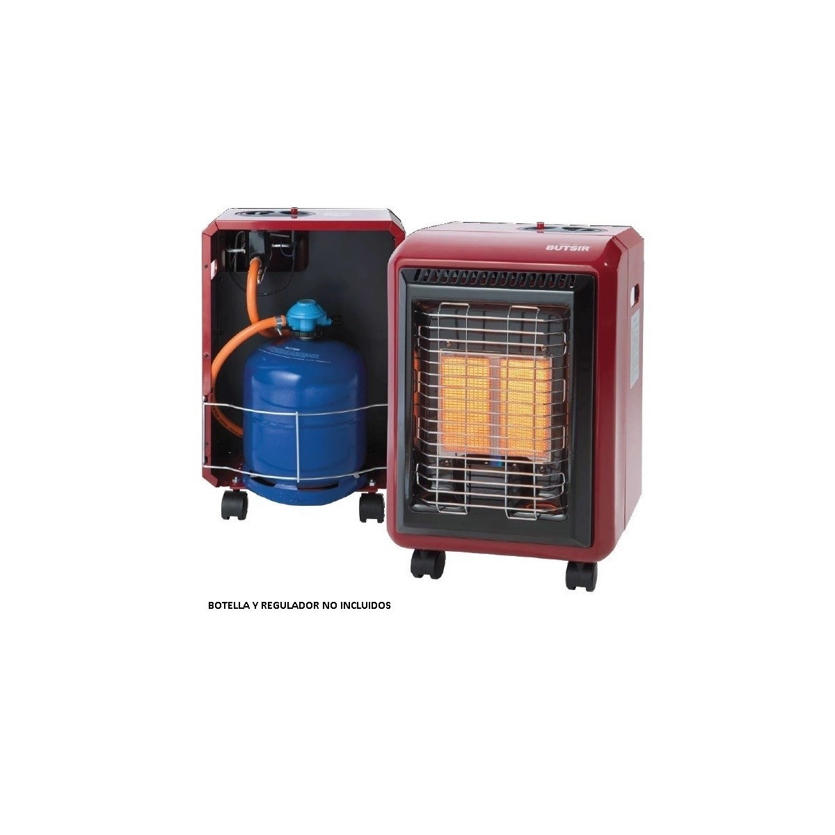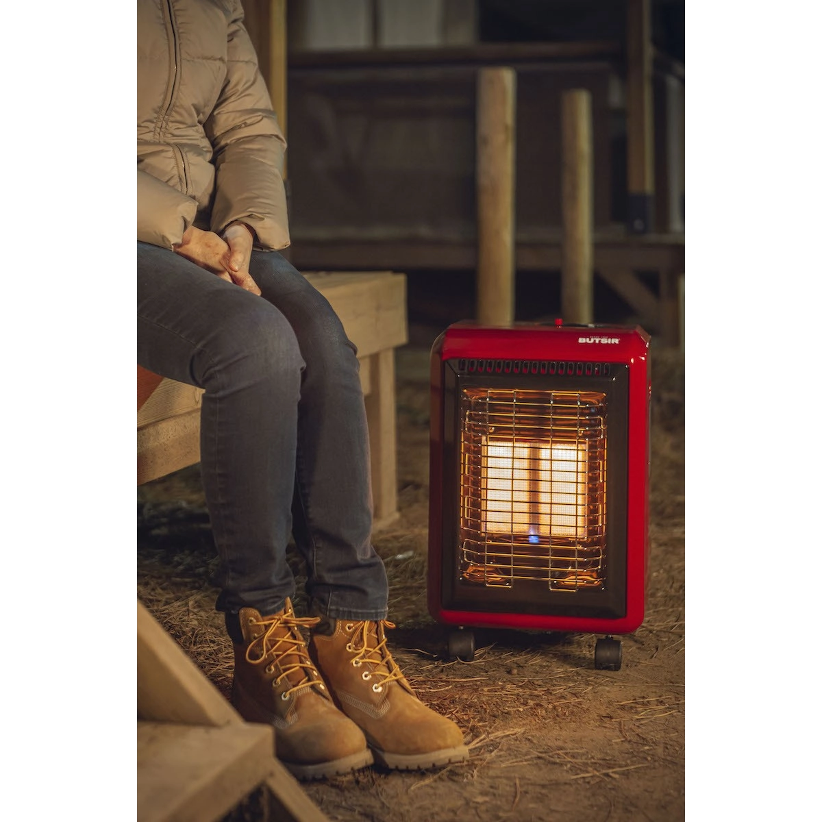Estufa de Gas Infrarrojos BUTSIR Compacta - Color Granate, Portátil y con Ruedas