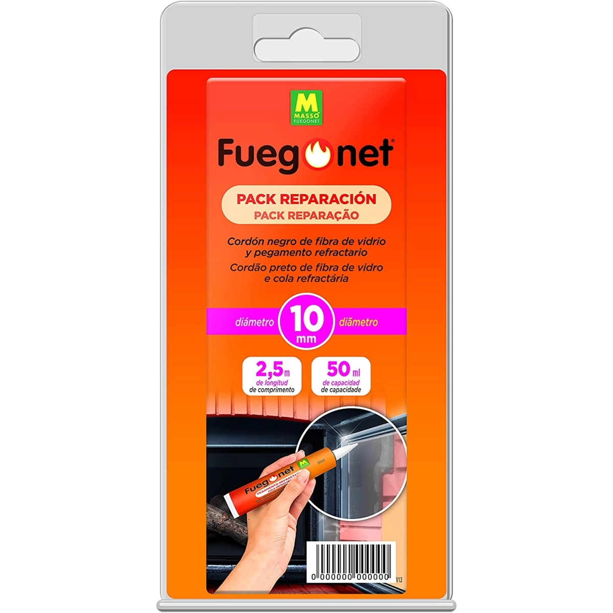 FUEGONET - PACK REPARACION CORDON NEGRO 10 MM + COLA REFRECTARIA - 231244