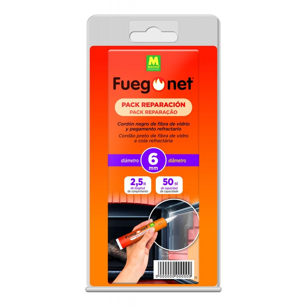 FUEGONET - PACK REPARACION CORDON NEGRO 6 MM + COLA REFRECTARIA - 231242