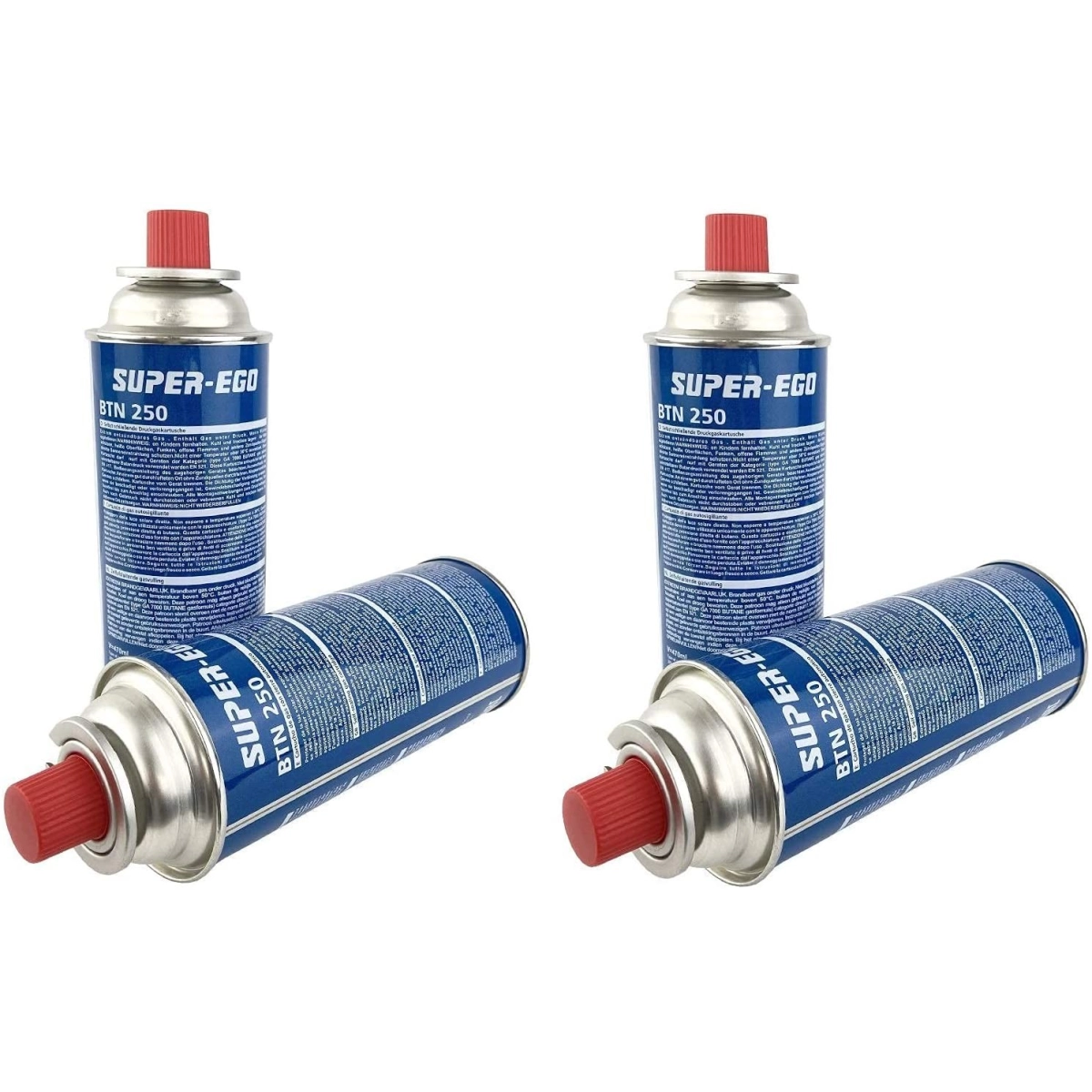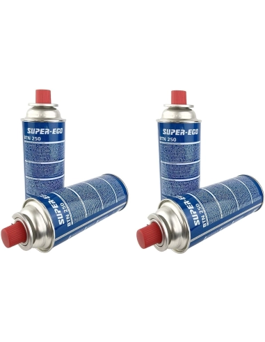 SUPER EGO - CARTUCHO DE GAS 250 PARA CAMPING, HORNILLO, QUEMADOR - PACK 4 UD
