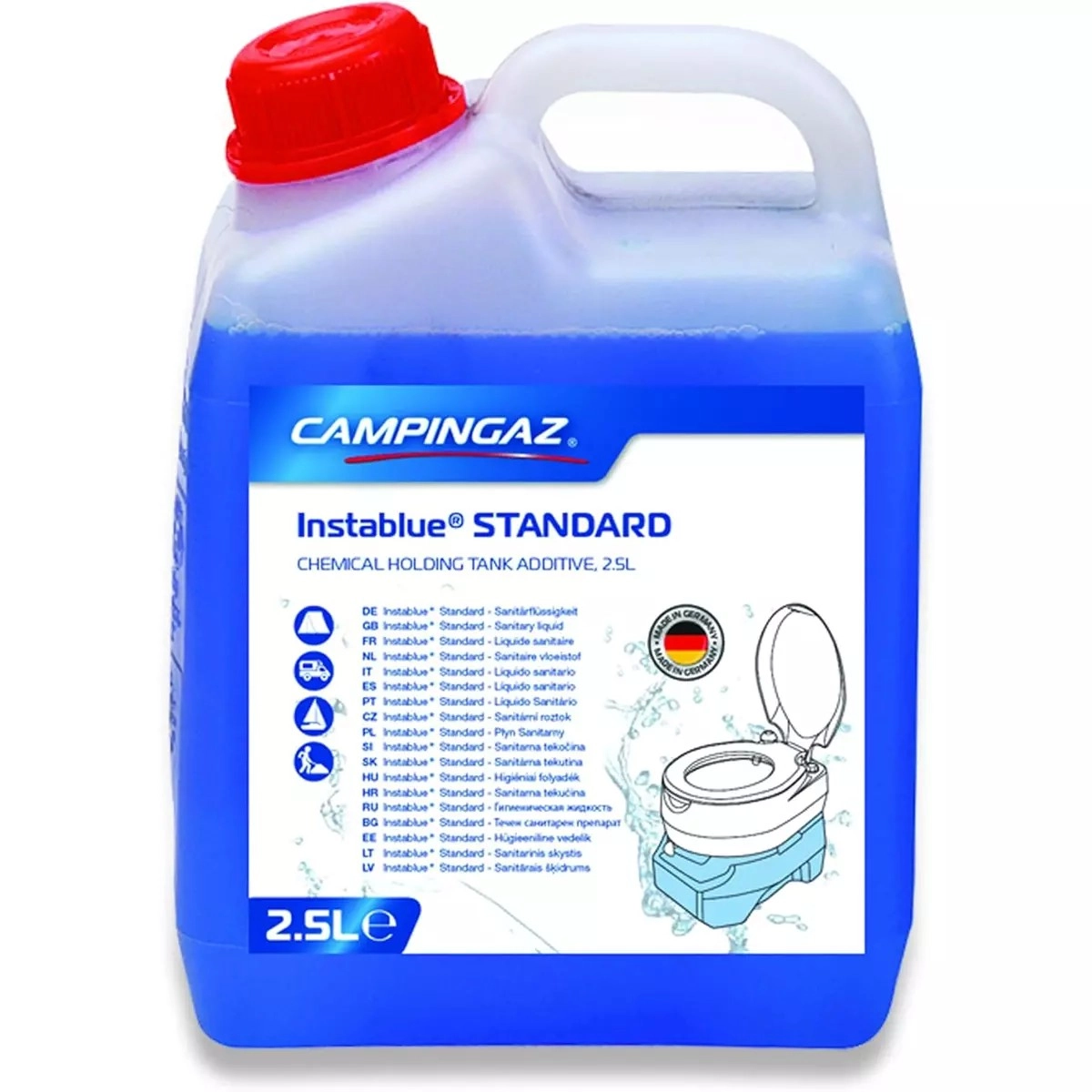 Líquido de limpieza para WC portátil Campingaz, formato 2,5 litros, color azul. Mantiene el depósito limpio e higienizado.