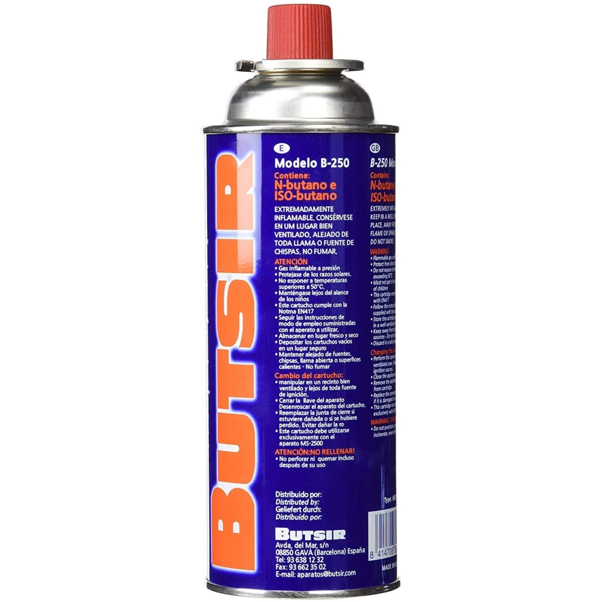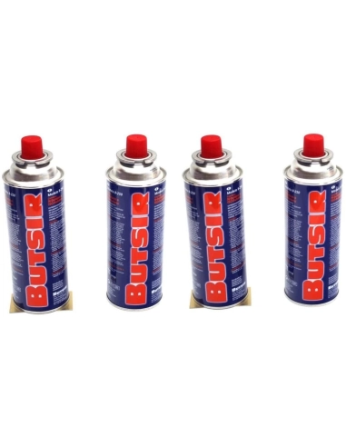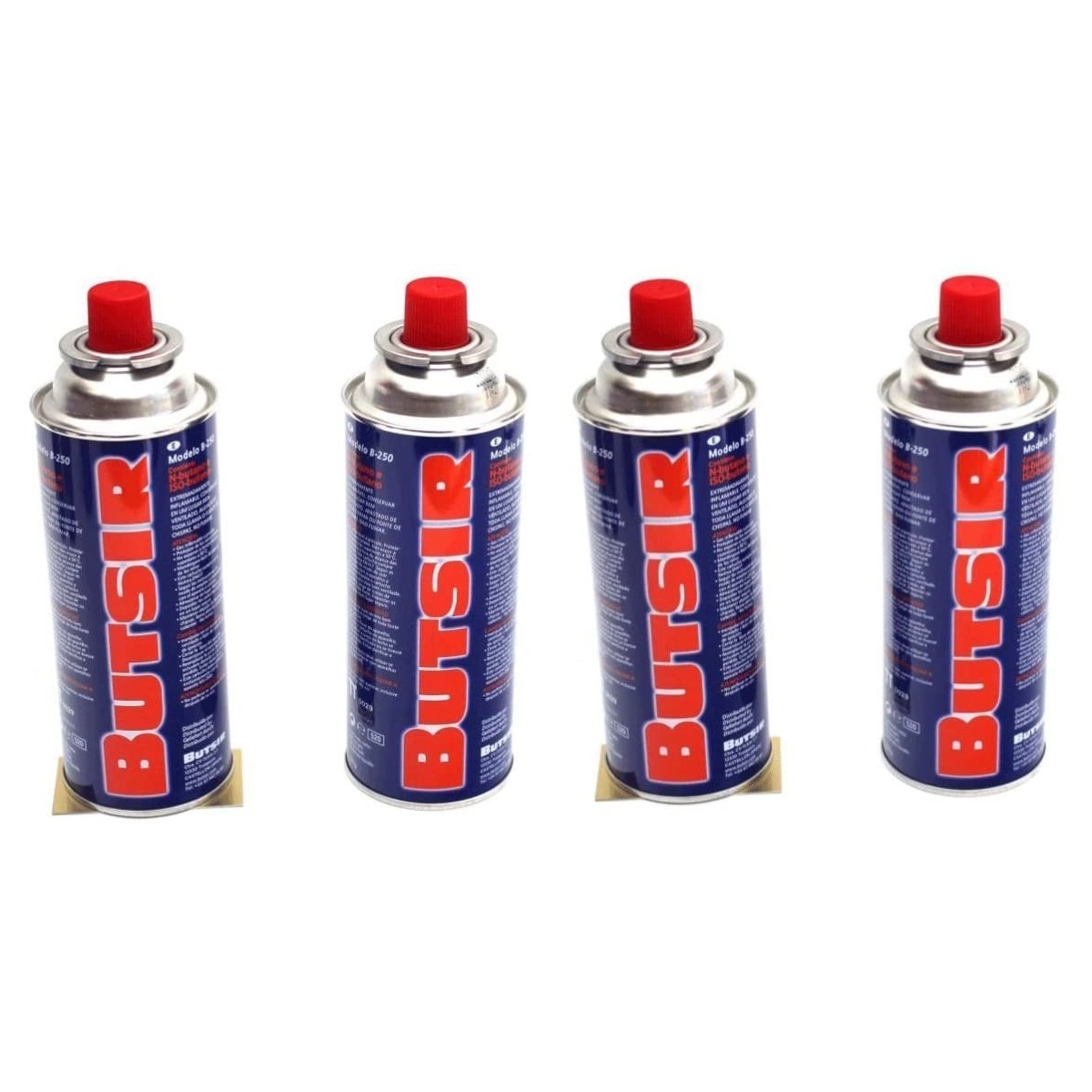 Este pack incluye 4 cartuchos de gas BUTSIR B-250, asegurando suficiente suministro para múltiples usos.