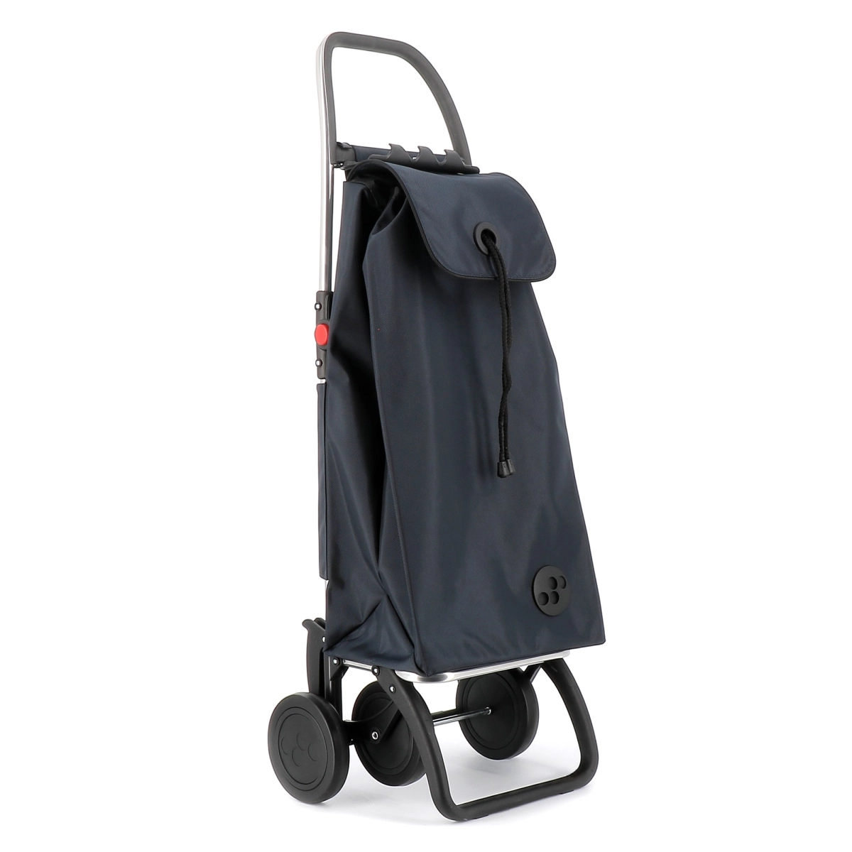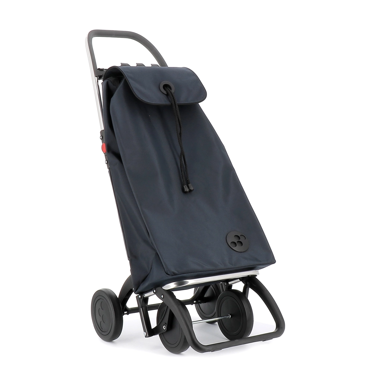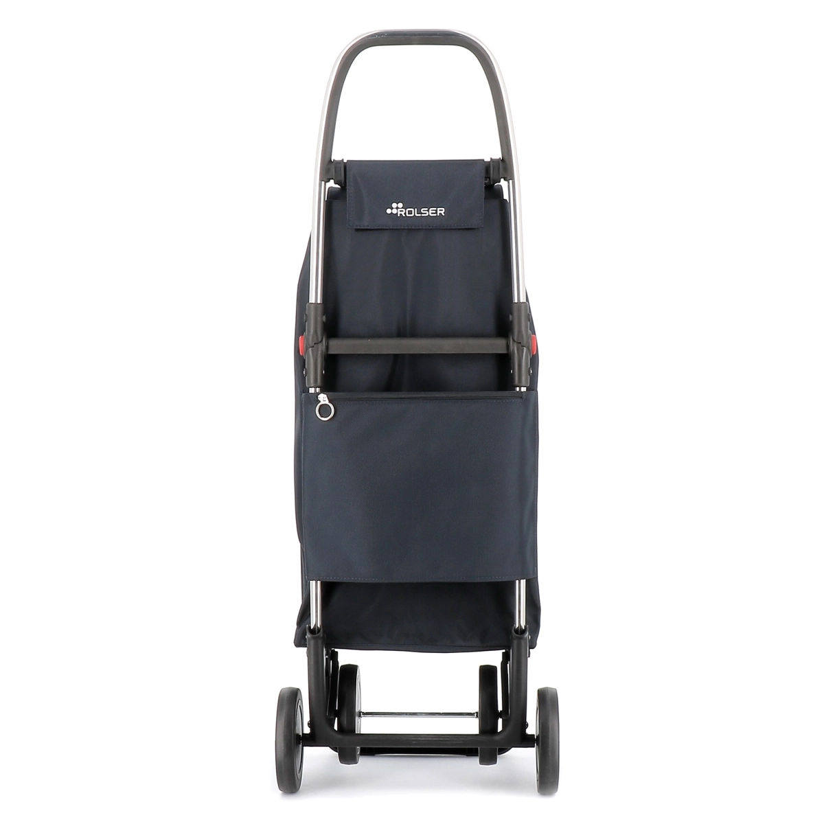Carro Rolser plegable de aluminio de 2/4 ruedas, para evitar cargas innecesarias. En posición de dos ruedas para llevar detrás cuando está vacío, y empujando delante cuando está lleno con 4 ruedas. El chasis 4L tiene un sistema de plegado hacia delante, para hacer el plegado completo. Este chasis tiene una pieza de enganche adaptable al carro del súper, y así no es necesario dejarlo a la entrada del comercio. Te ayudará con cualquier tipo de traslado de pequeñas cargas. Perfecto para llevar la carga de la lavandería, playa, shopping, pesca, gimnasio, etc. La bolsa I-MAX MF tiene formato tipo mochila, doble bolsillo interior, cierre con cordón, ojal en la solapa, bolsillo trasero con cremallera y se adapta fácilmente al chasis con una solapa.