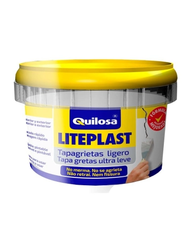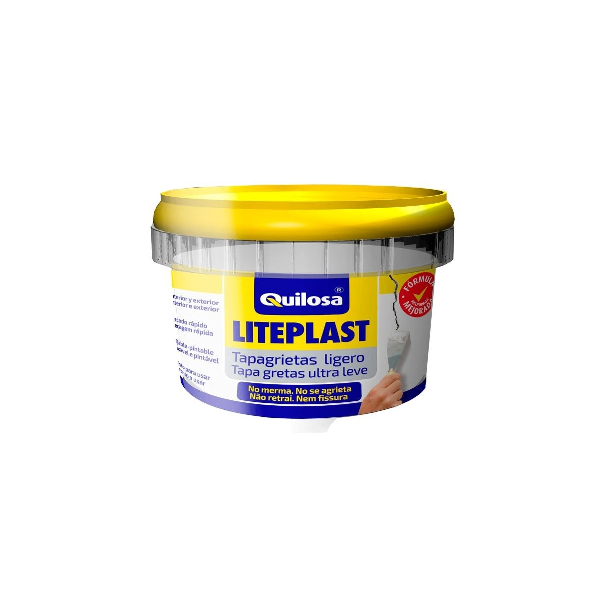 Pasta reparadora QUILOSA LITEPLAST para grietas y pequeños desperfectos en paredes y techos. Acabado blanco, lista para usar.