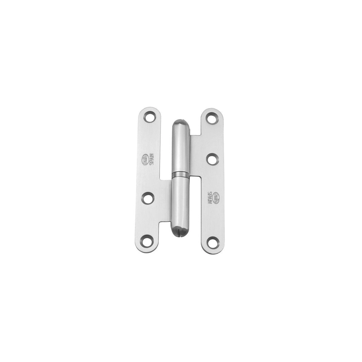 Bisagra AMIG con canto redondo, apertura a la derecha, fabricada en acero con acabado en cromo mate. Robusta, duradera y perfecta para puertas de paso o armarios.
