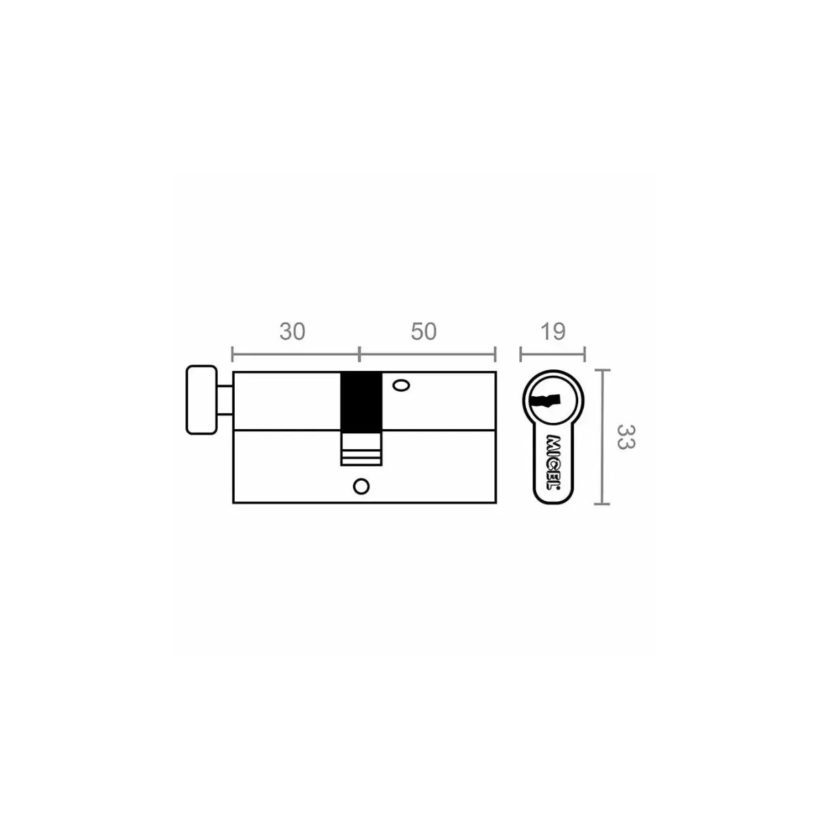 El cilindro de seguridad Micel CS6 (Referencia 13158) con medida de 30x50 mm es la solución perfecta para mejorar la seguridad de tu hogar añadiendo un plus de funcionalidad. Su principal característica es el pomo integrado en el lado corto (30 mm), que facilita el bloqueo de la puerta desde dentro sin usar llaves.