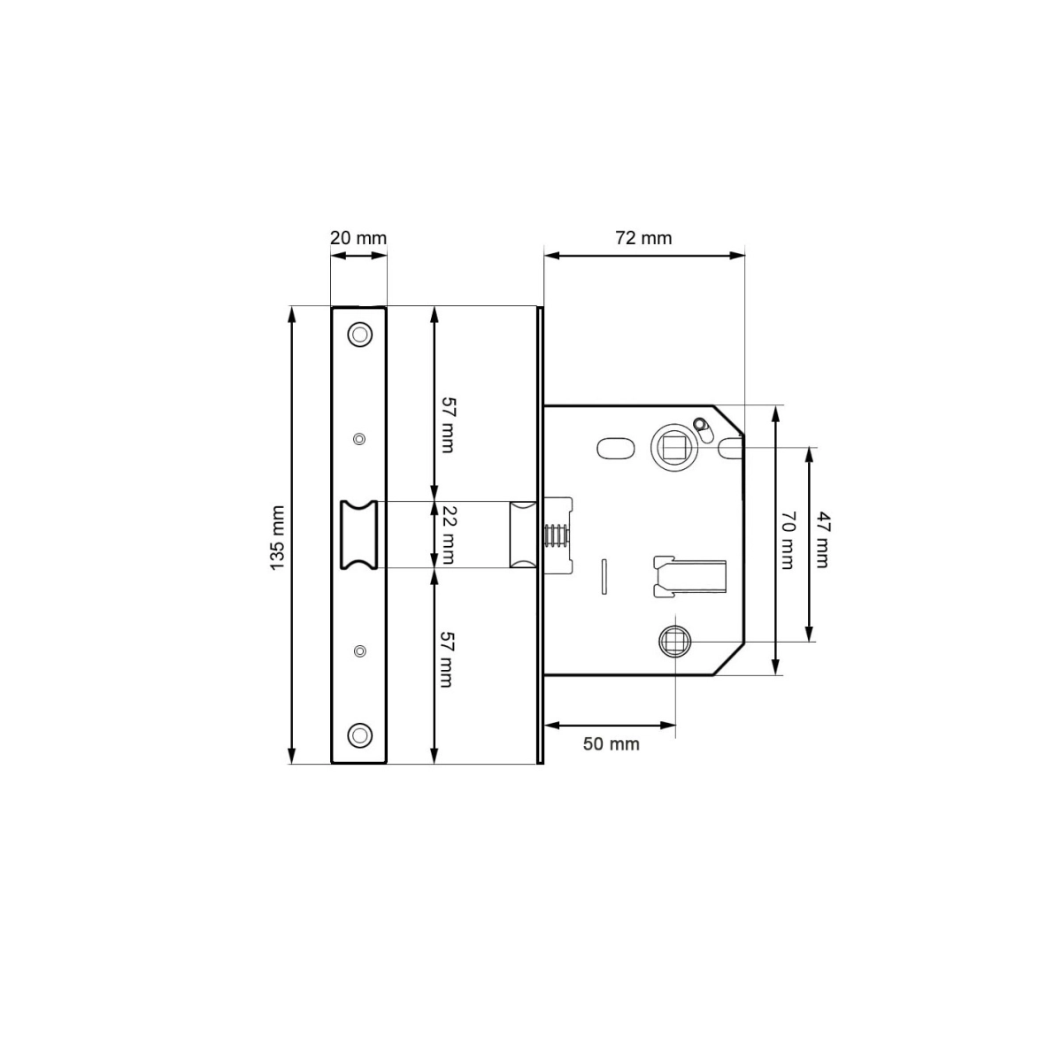 PICAPORTE CONDENA CON CANTO REDONDO 47 MM