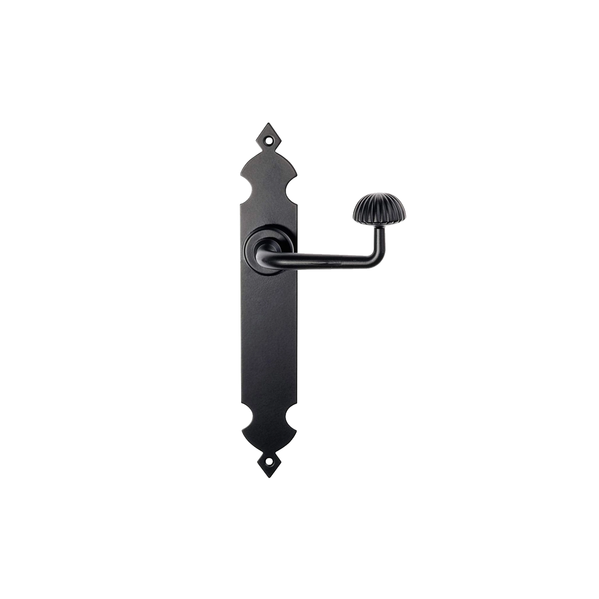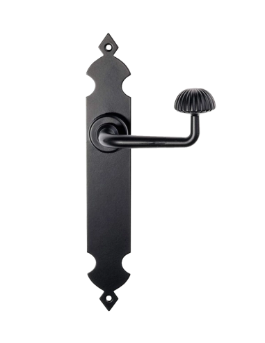 Elegante manivela automática de hierro forjado con diseño inspirado en la época de Felipe II. Perfecta para puertas exteriores que buscan un toque histórico y sofisticado.