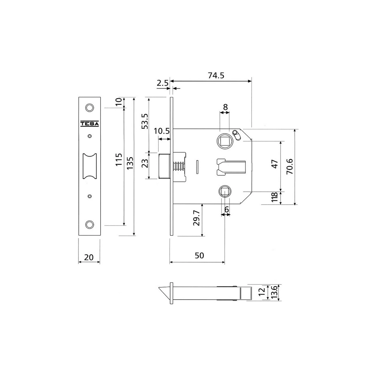 Tesa - picaporte unificado 2004U/50 Frente cuadrado acero niquelado