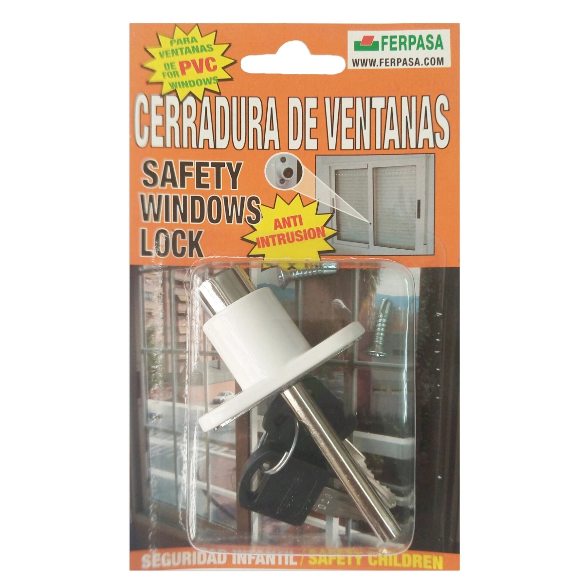 FERPASA - Cerradura De Ventanas Color Blanco Pin Largo - 13113