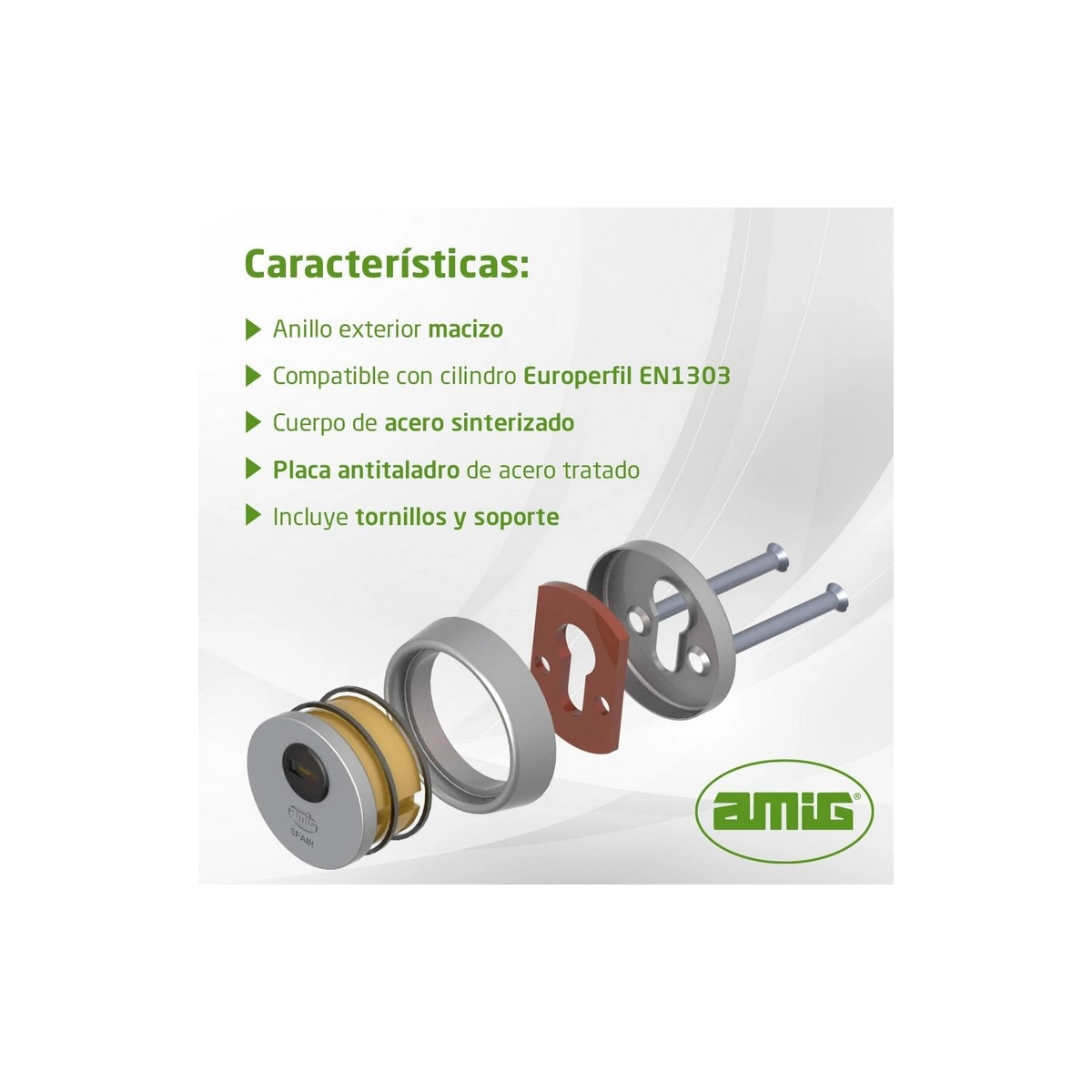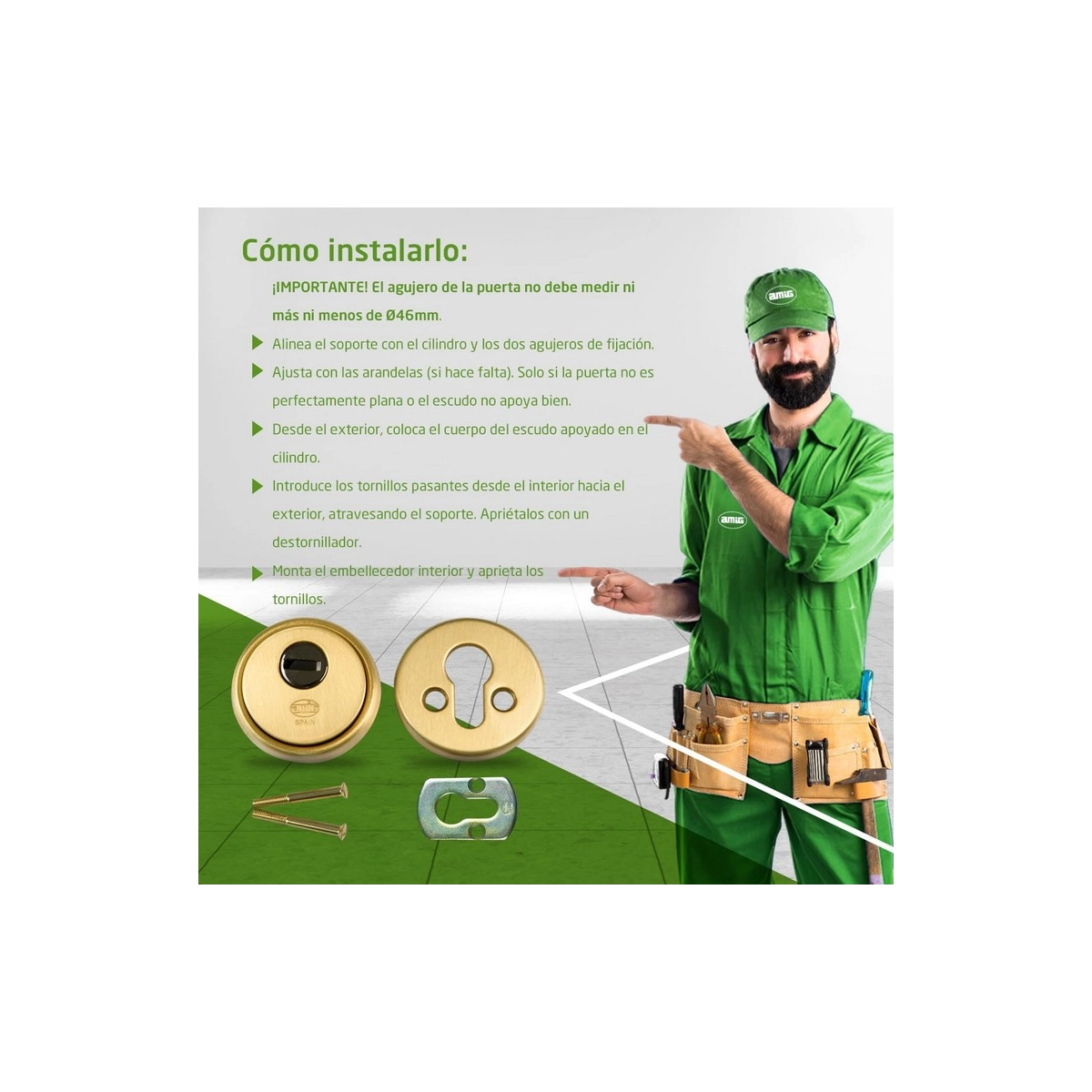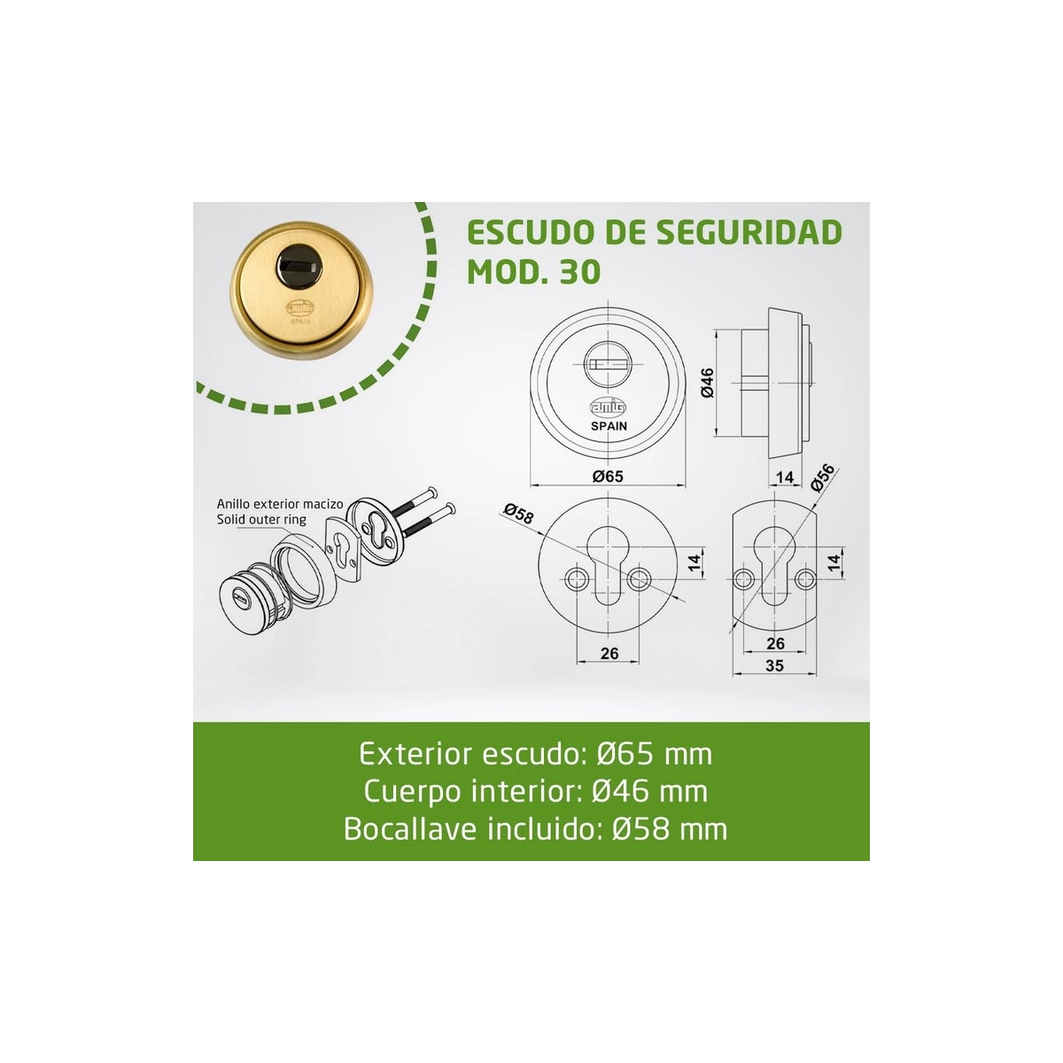 Amig - Escudo de seguridad Mod. 30 - Latón - Dorado - Anillo exterior macizo - Ø65 mm