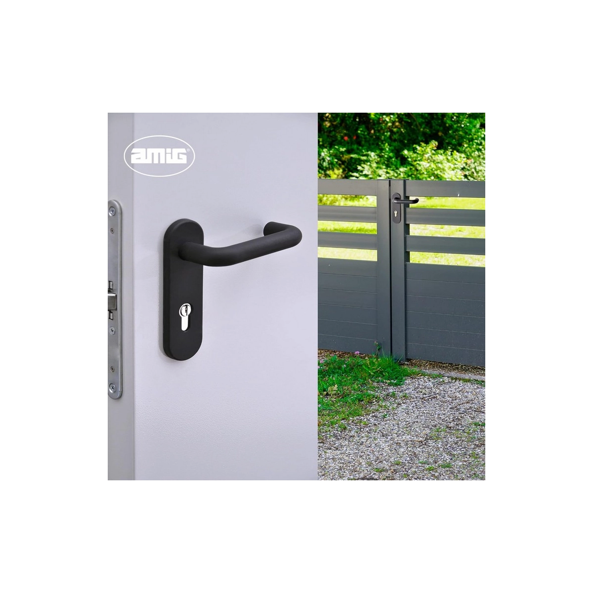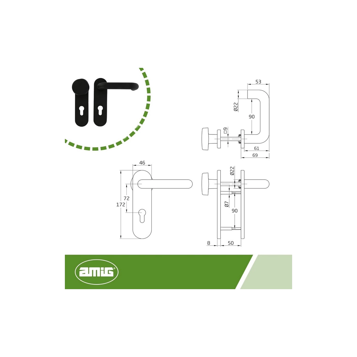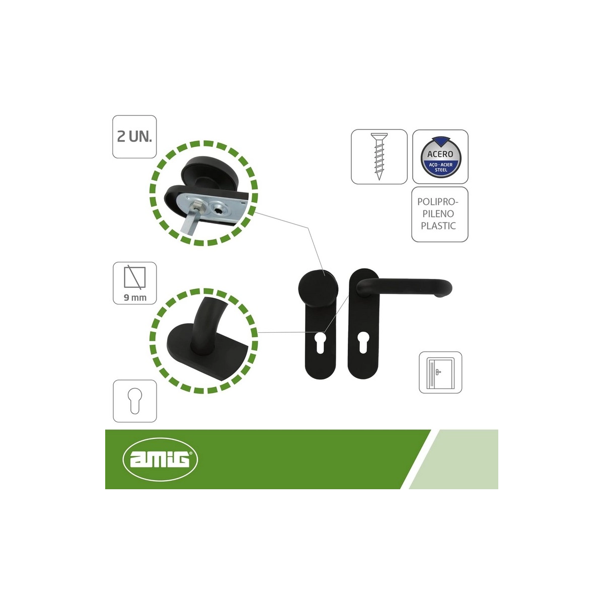 Amig – Manillas Puerta con Placa y Pomo Fijo Placa 172 x 46 mm - Cuadradillo 9 mm
