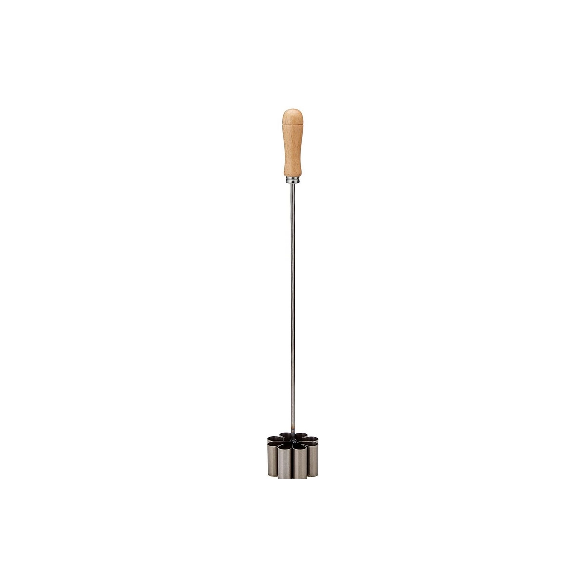 Molde metálico de alta calidad con mango de madera, ideal para hacer flores de sartén crujientes y decorativas. Diseño resistente, fácil de usar y perfecto para repostería tradicional.