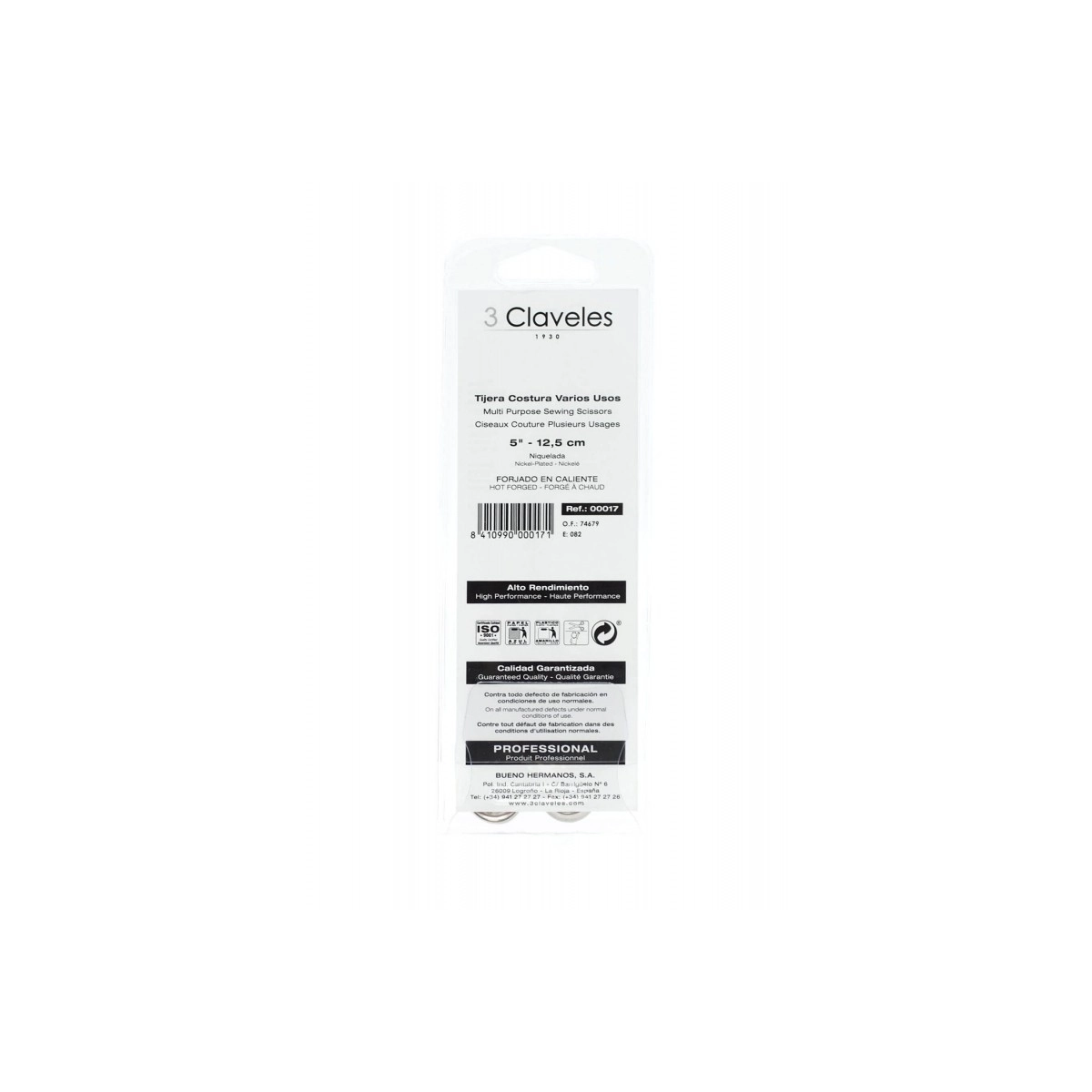 3 Claveles - Tijera Costura Varios Usos 5" 12,5 CM - 00017