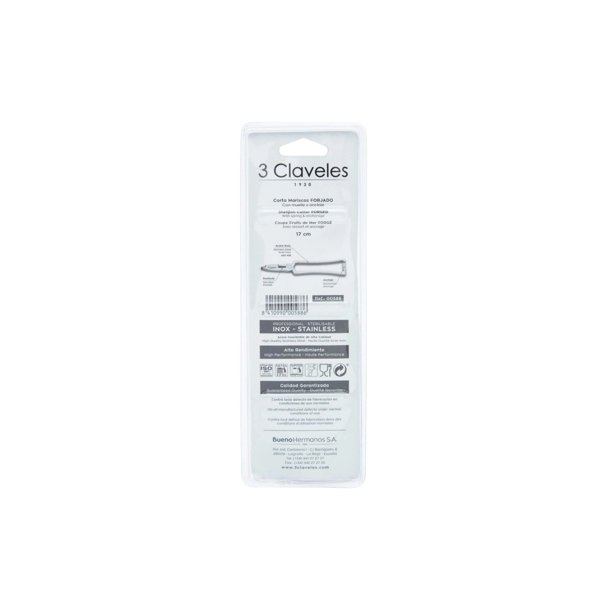 3 CLAVELES - CORTA MARISCOS PROFESIONAL INOX 17 CM - 00588