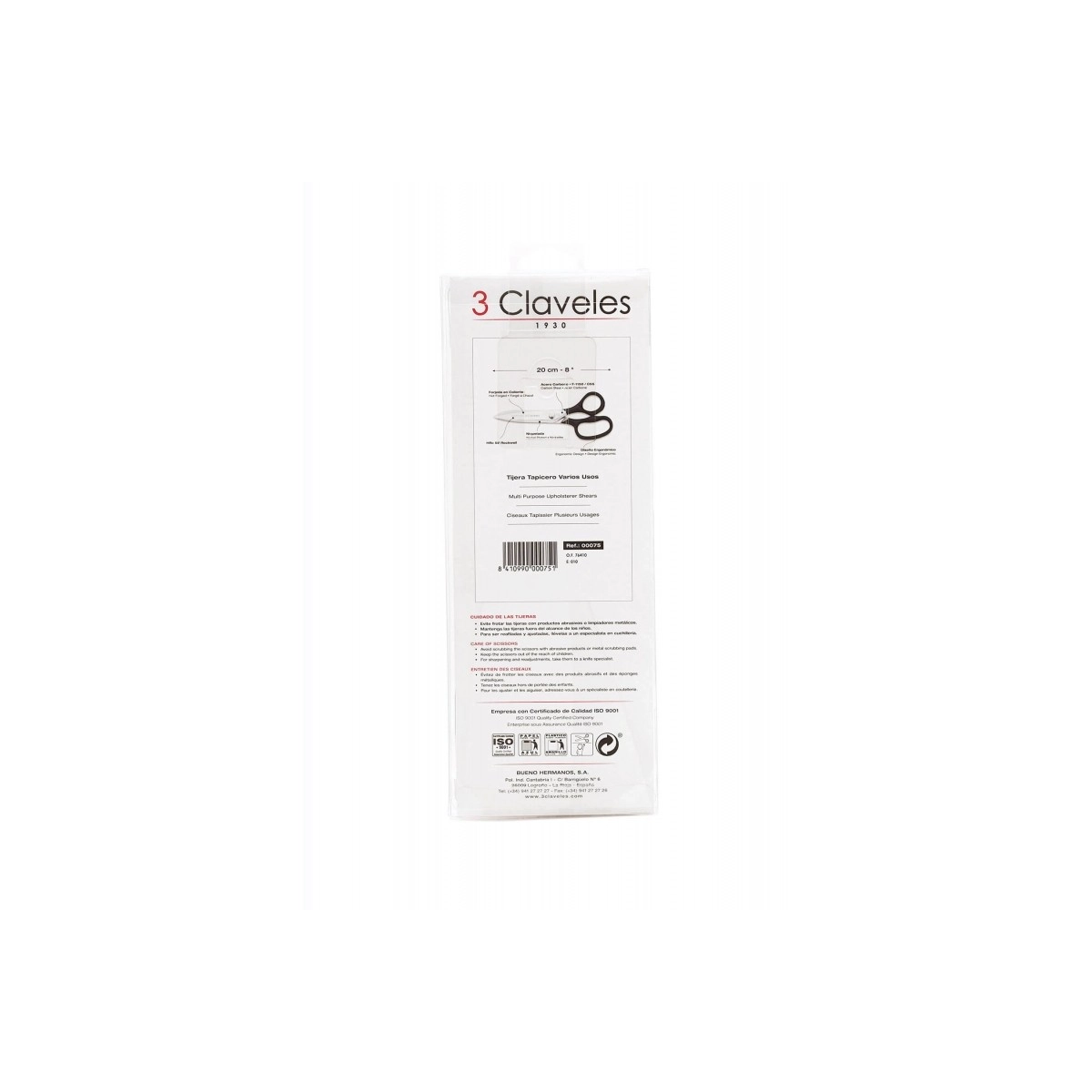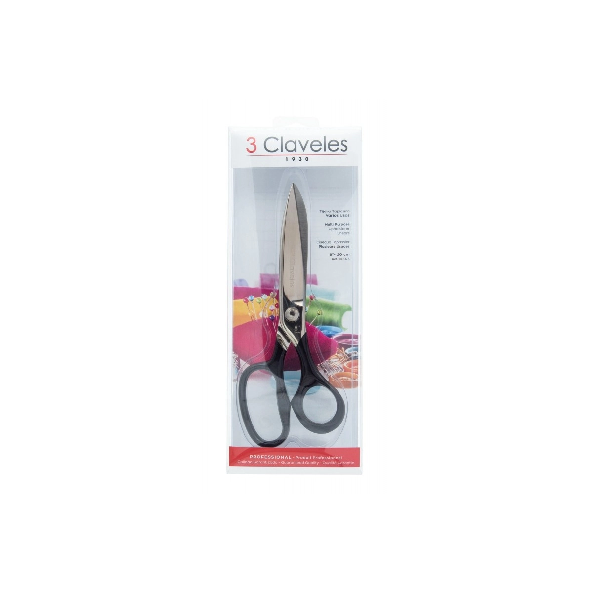 3 CLAVELES - TIJERA TAPICERO VARIOS USOS ACERO CARBONO 8" 20 CM - 00075
