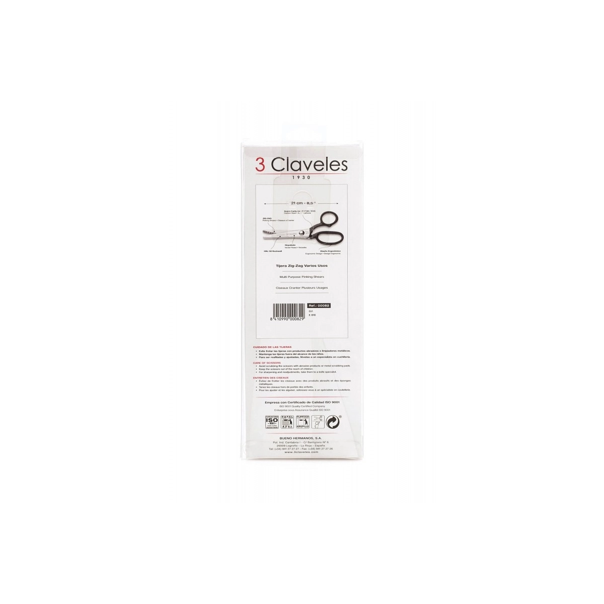 3 CLAVELES - TIJERA ZIG-ZAG VARIOS USOS ACERO CARBONO 8,5" 22 CM - 00082