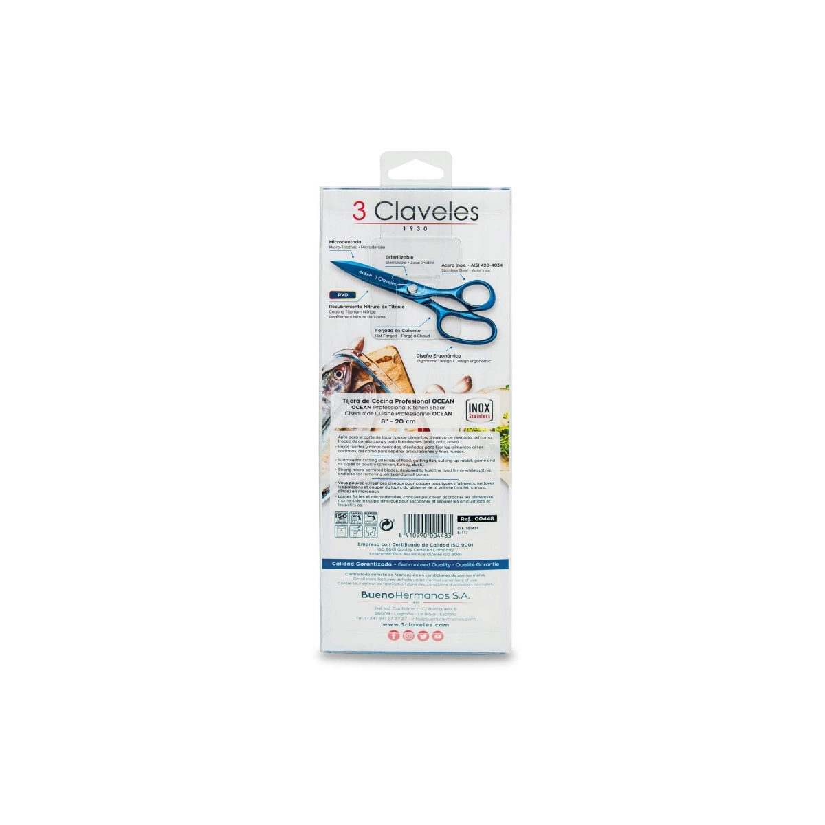 3 CLAVELES - TIJERA COCINA OCEAN ACERO INOXIDABLE 8" 20 CM - 00448