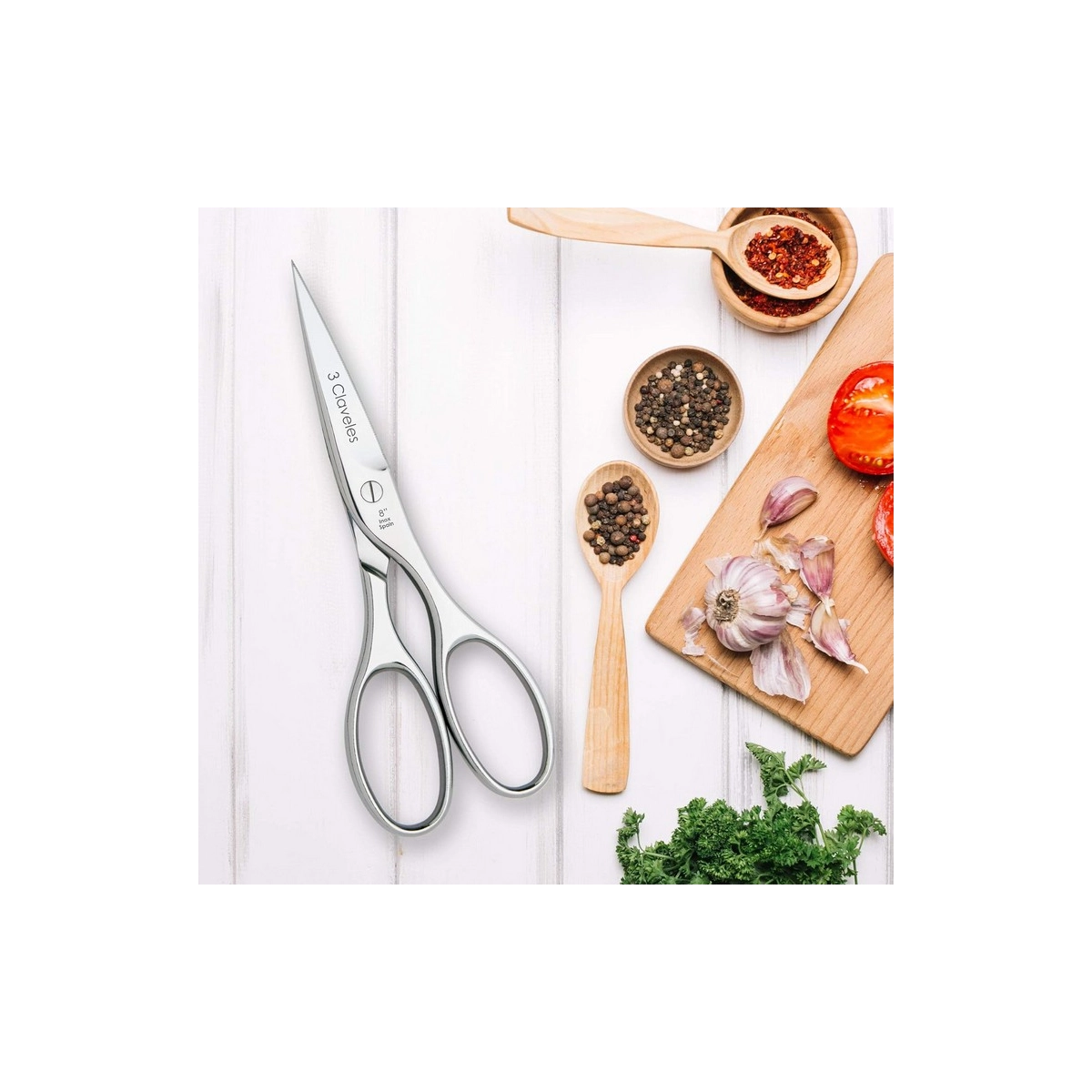 3 CLAVELES - Tijera para cocina acero inoxidable 8"